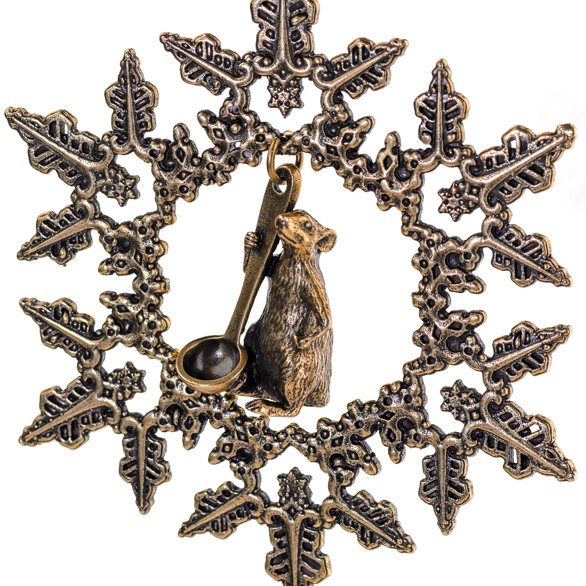Бронзовую елочную игрушку с крысой сделана из высококачественного металла с вниманием к мельчайшим деталям.- |