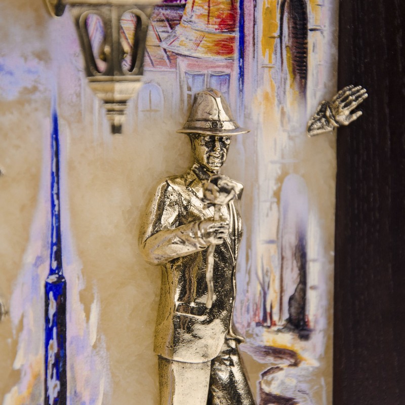 Бронзовая картина "Парень с розой. Набережная. Мост"