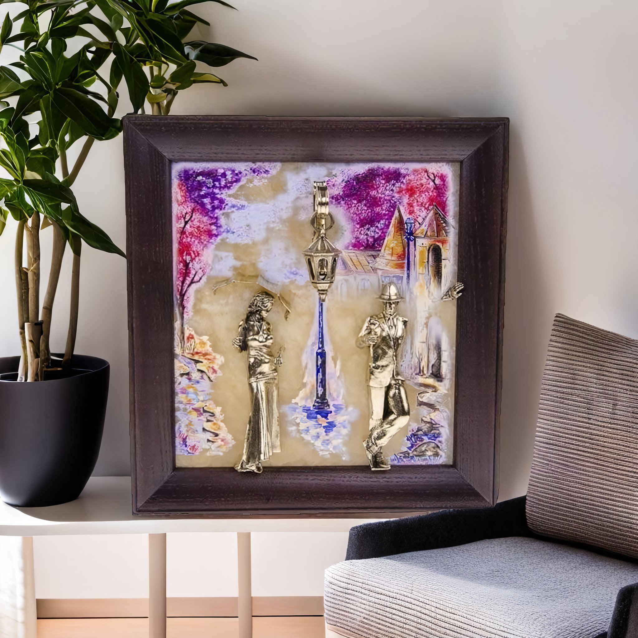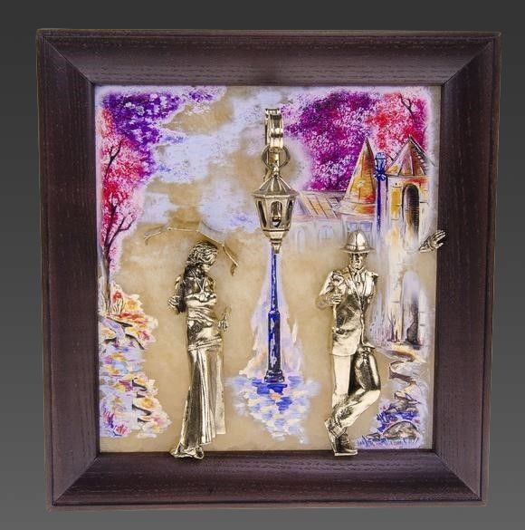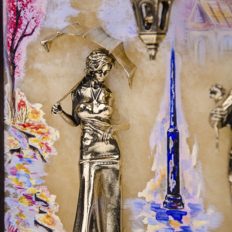 Бронзовая картина "Пара. Набережная" с подсветкой