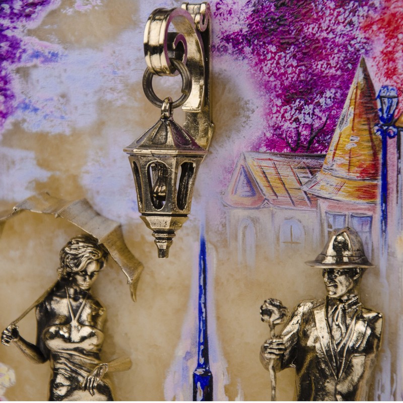 Бронзовая картина "Пара. Набережная. Мост" с подсветкой