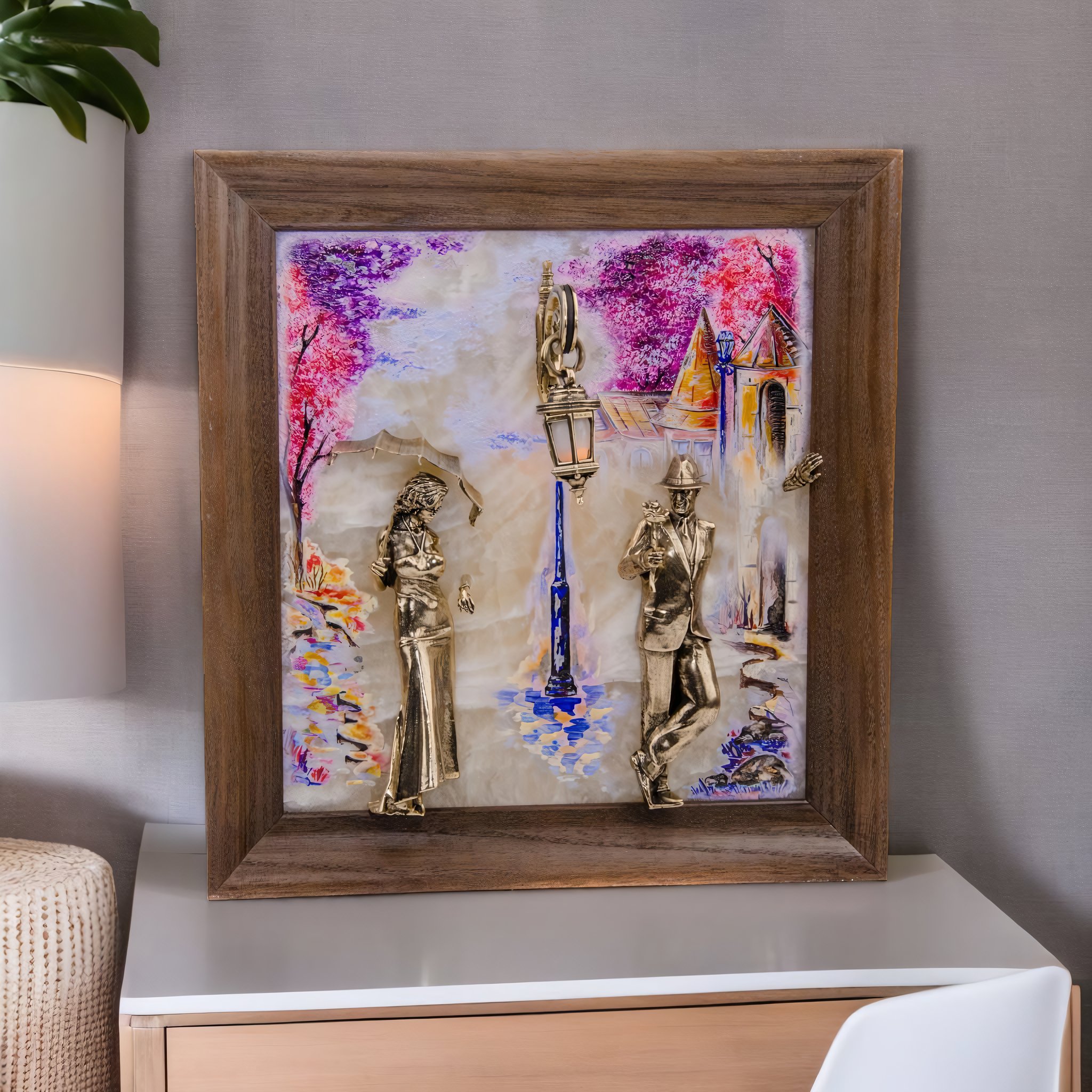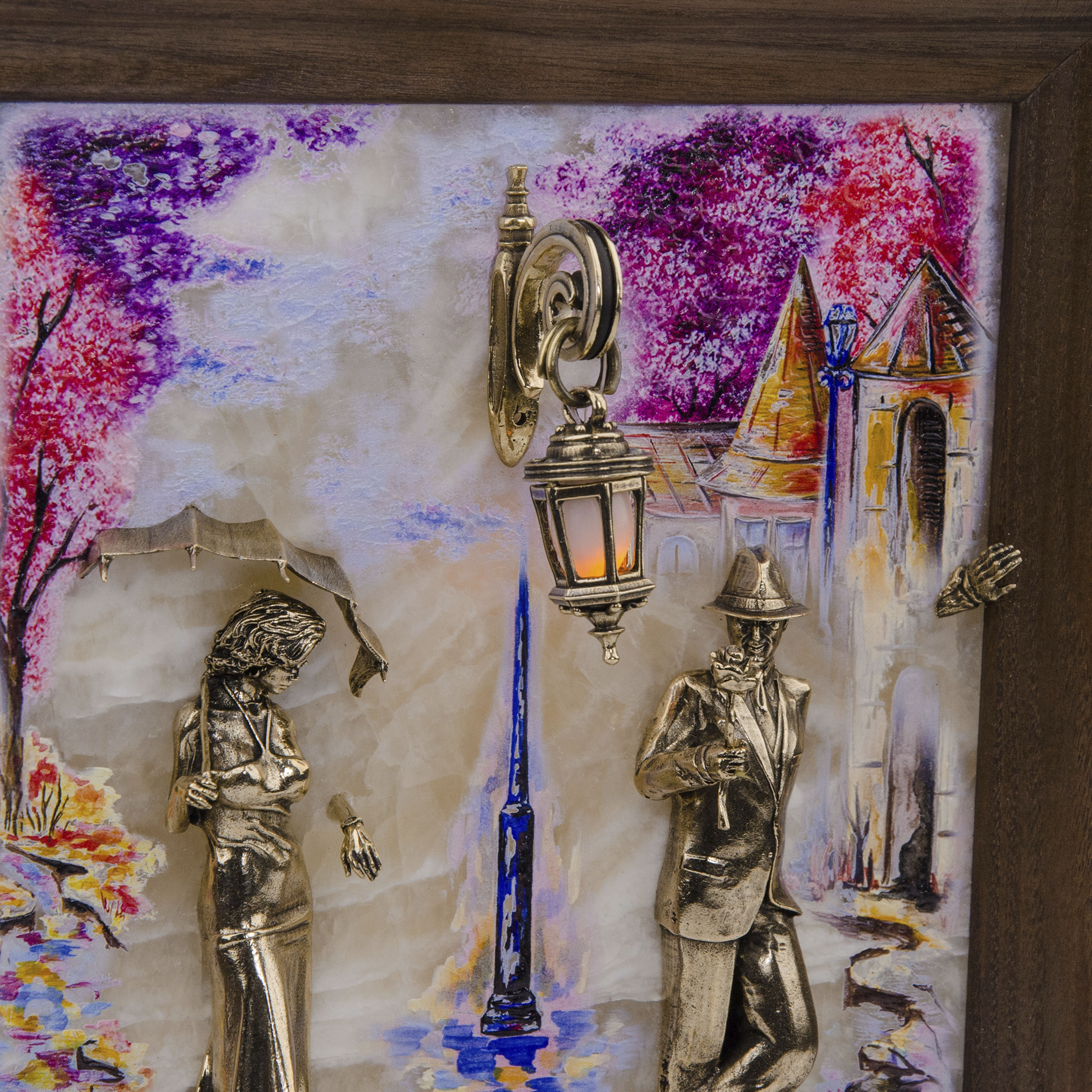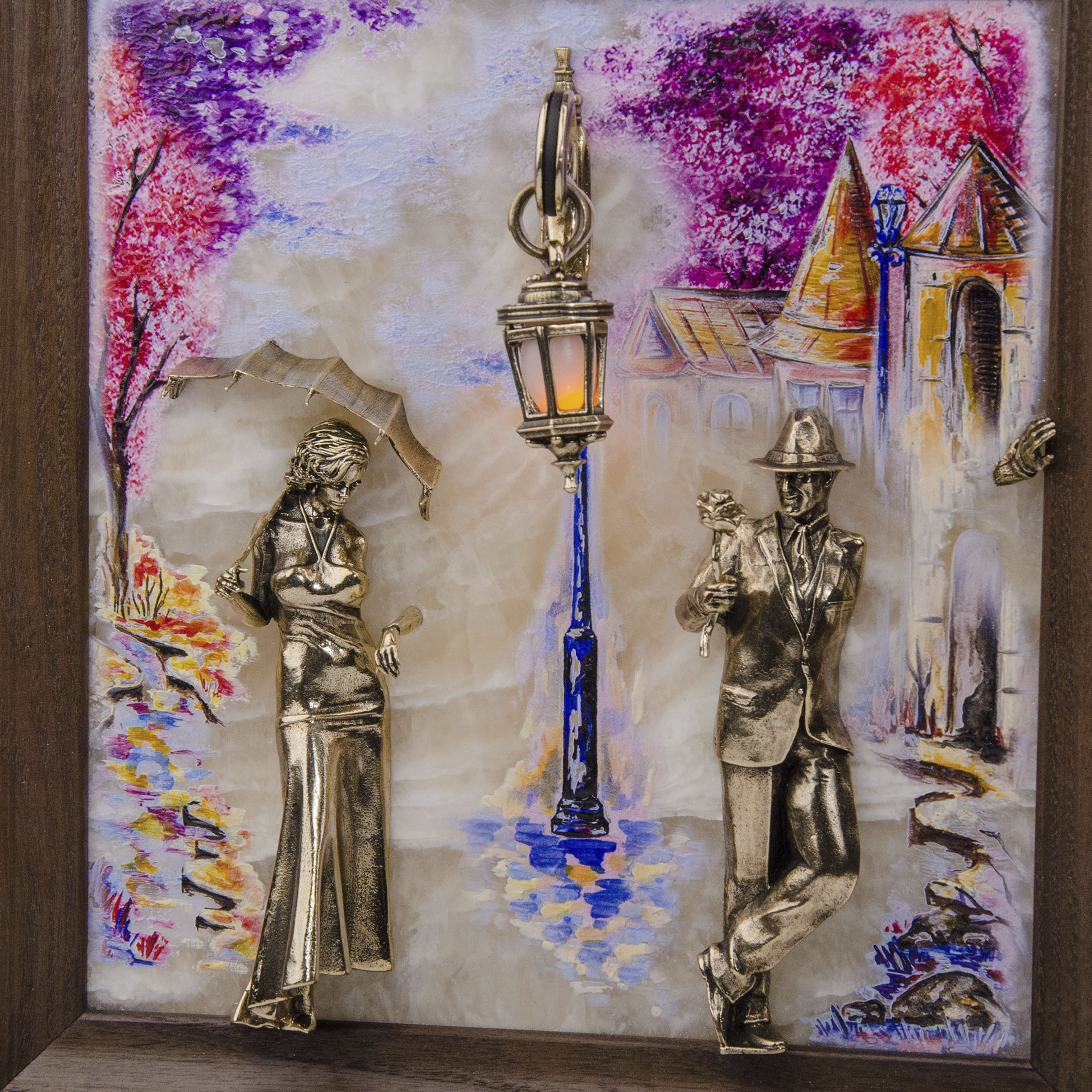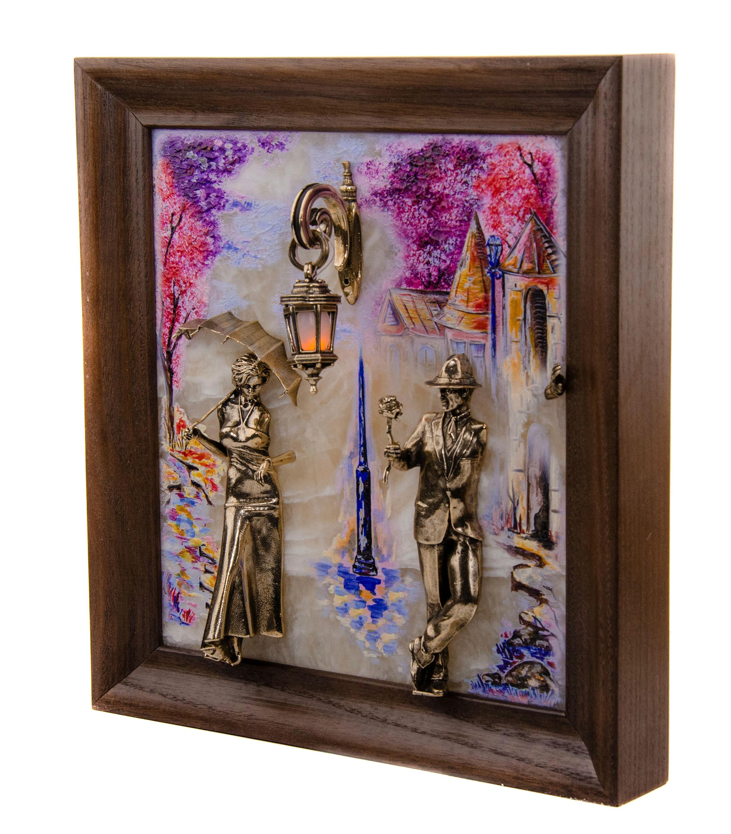 Бронзовая картина "Пара. Набережная" с подсветкой