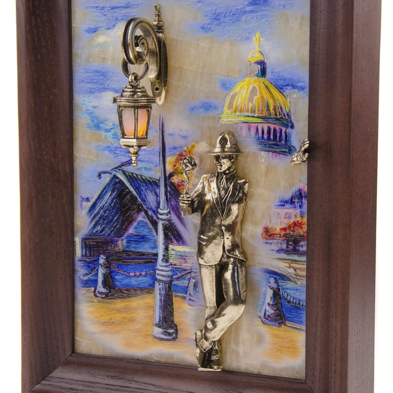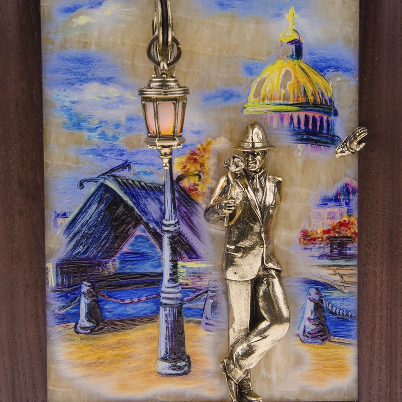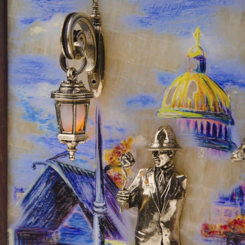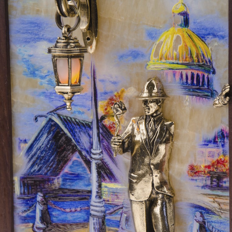 Бронзовая картина "Парень с розой. Набережная. Мост" с подсветкой