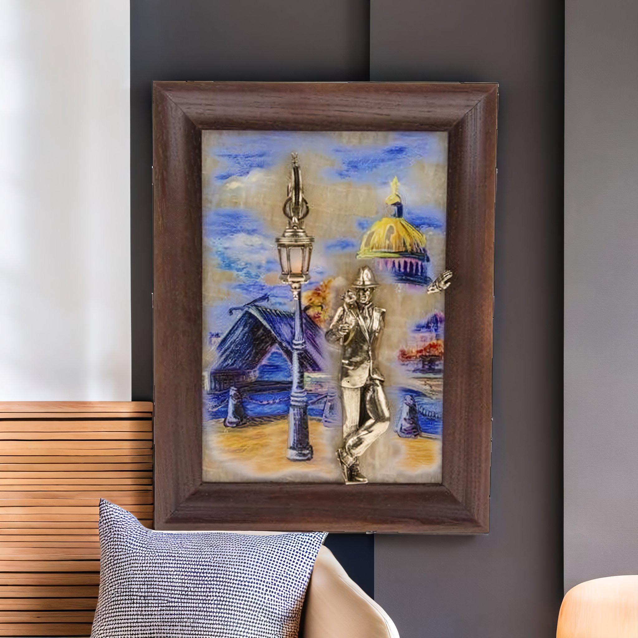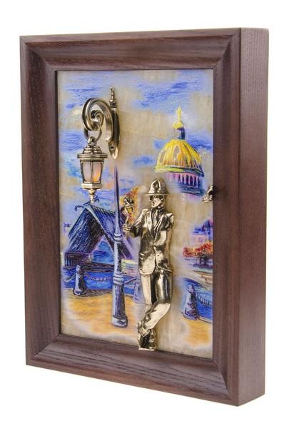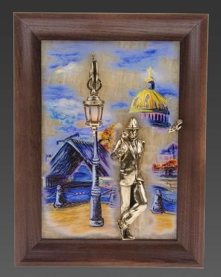 Бронзовая картина "Пара. Набережная. Мост" с подсветкой