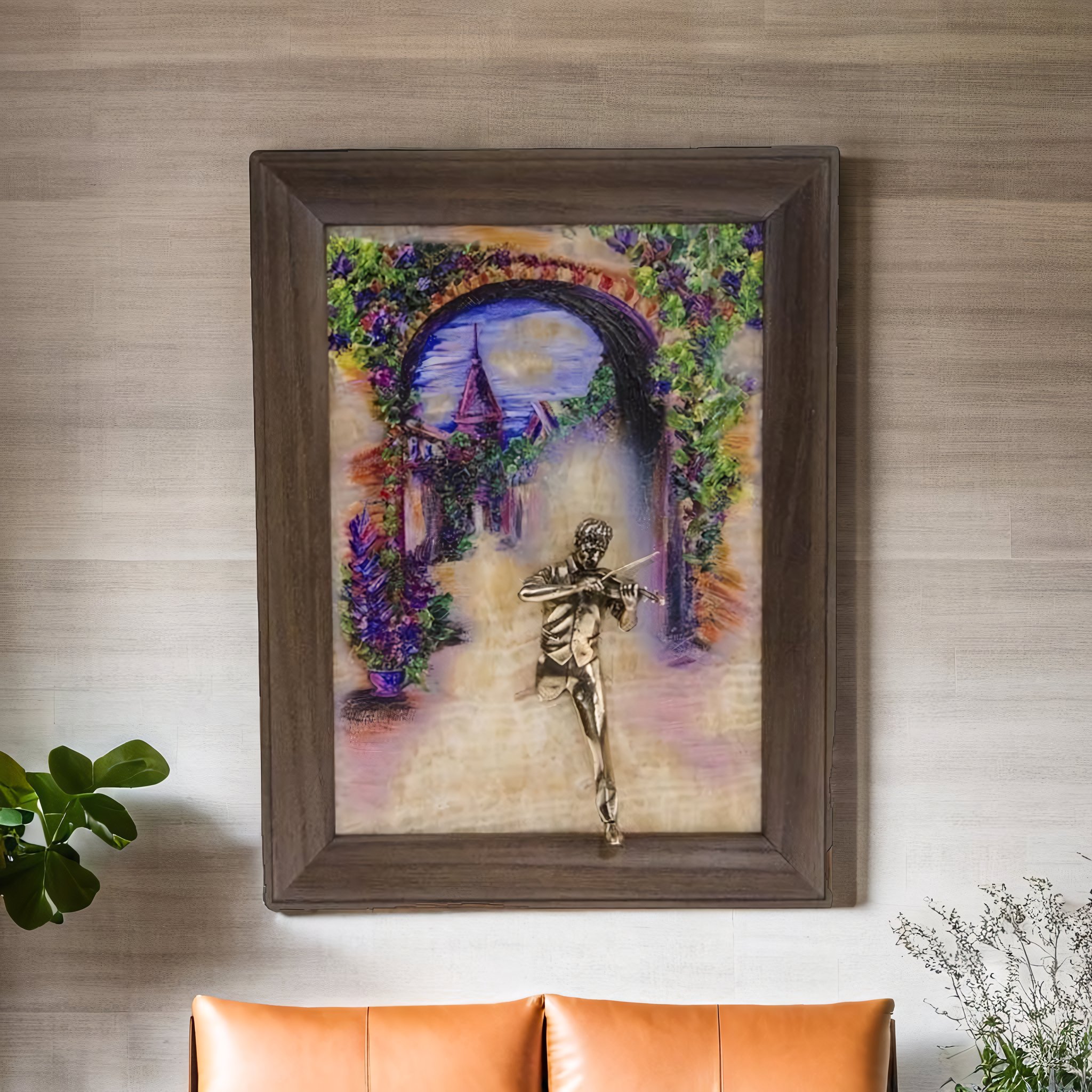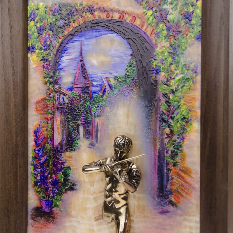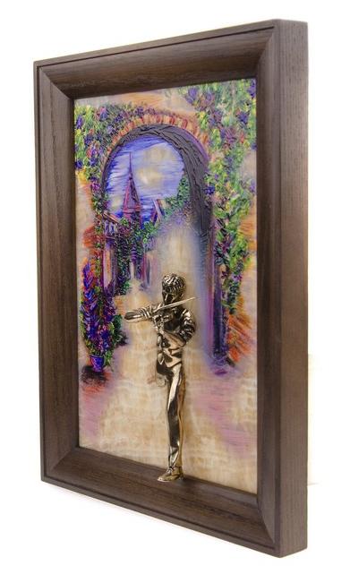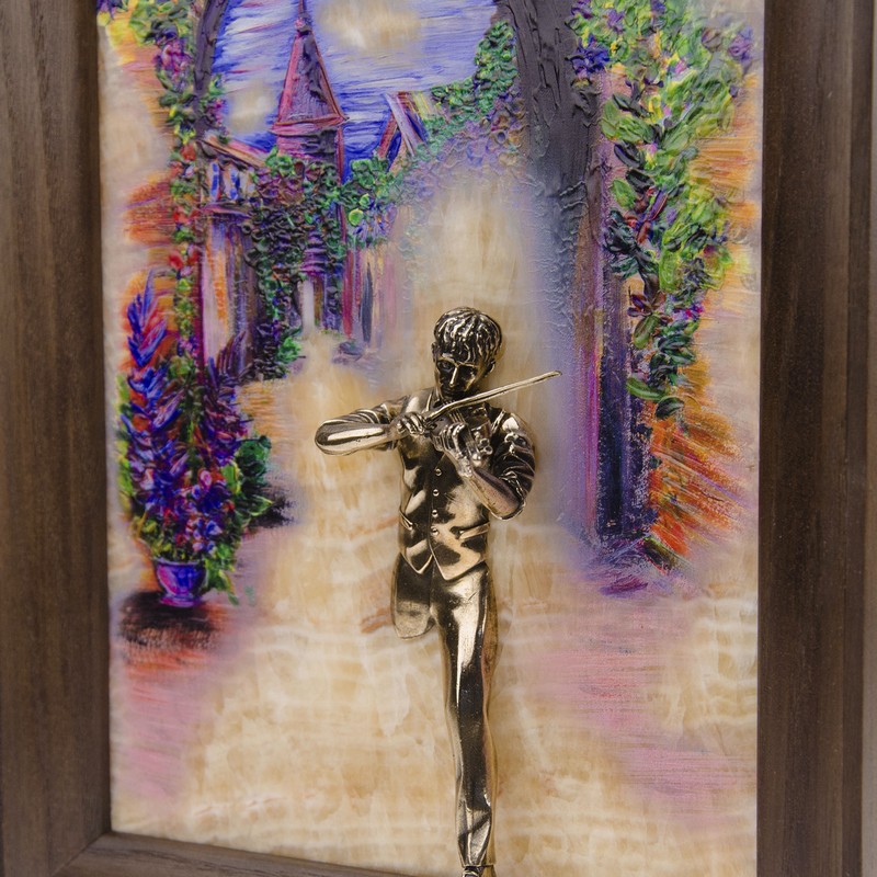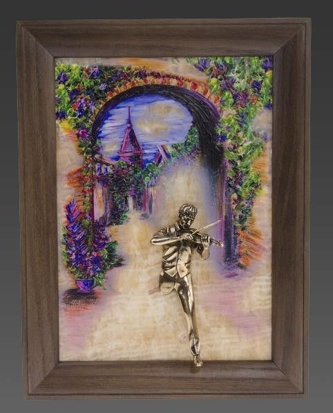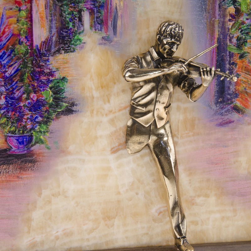 Бронзовая картина "Скрипач. Рассвет"