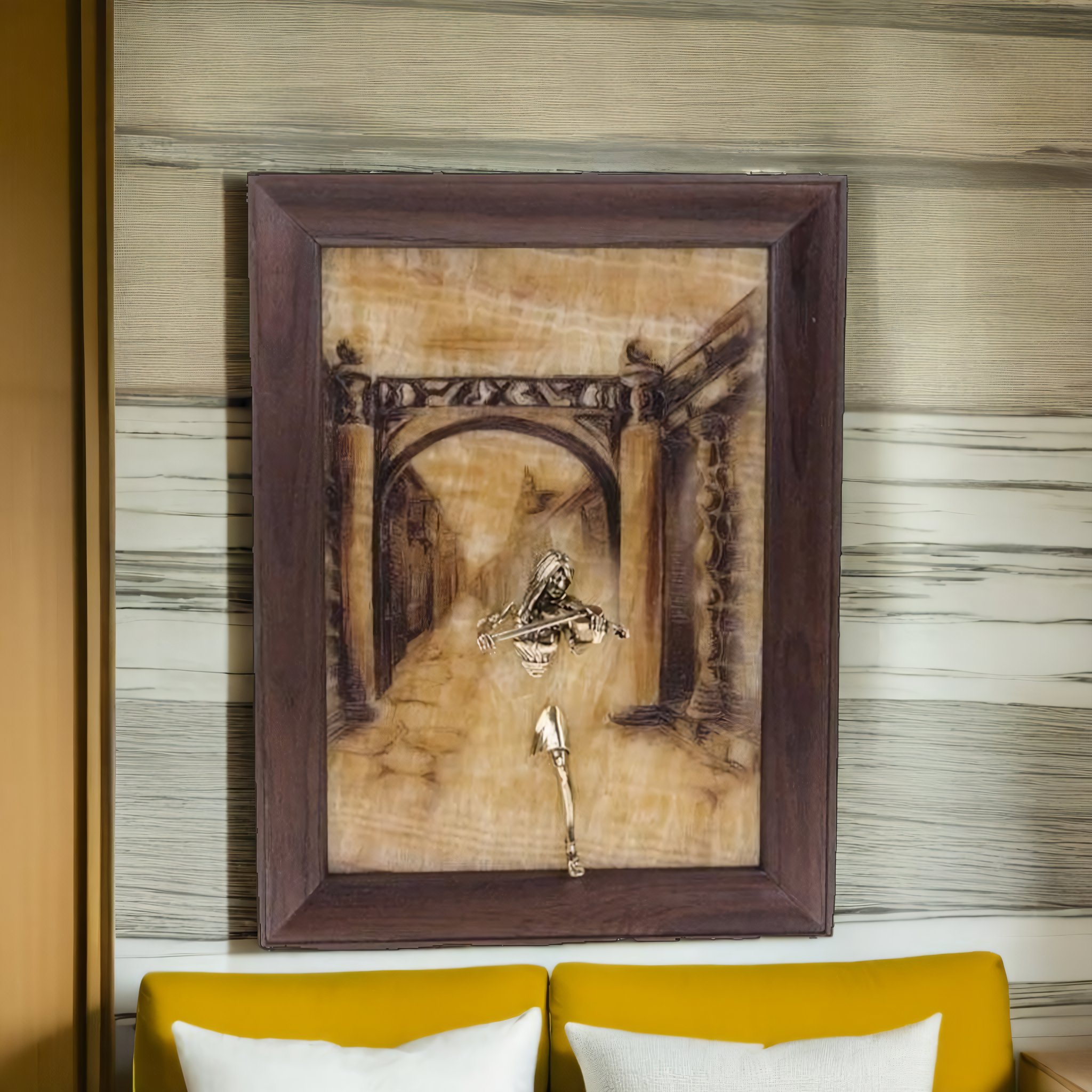 Бронзовая картина "Пара. Набережная. Мост" с подсветкой