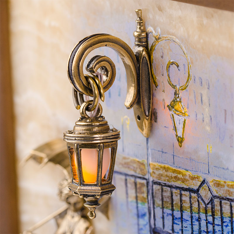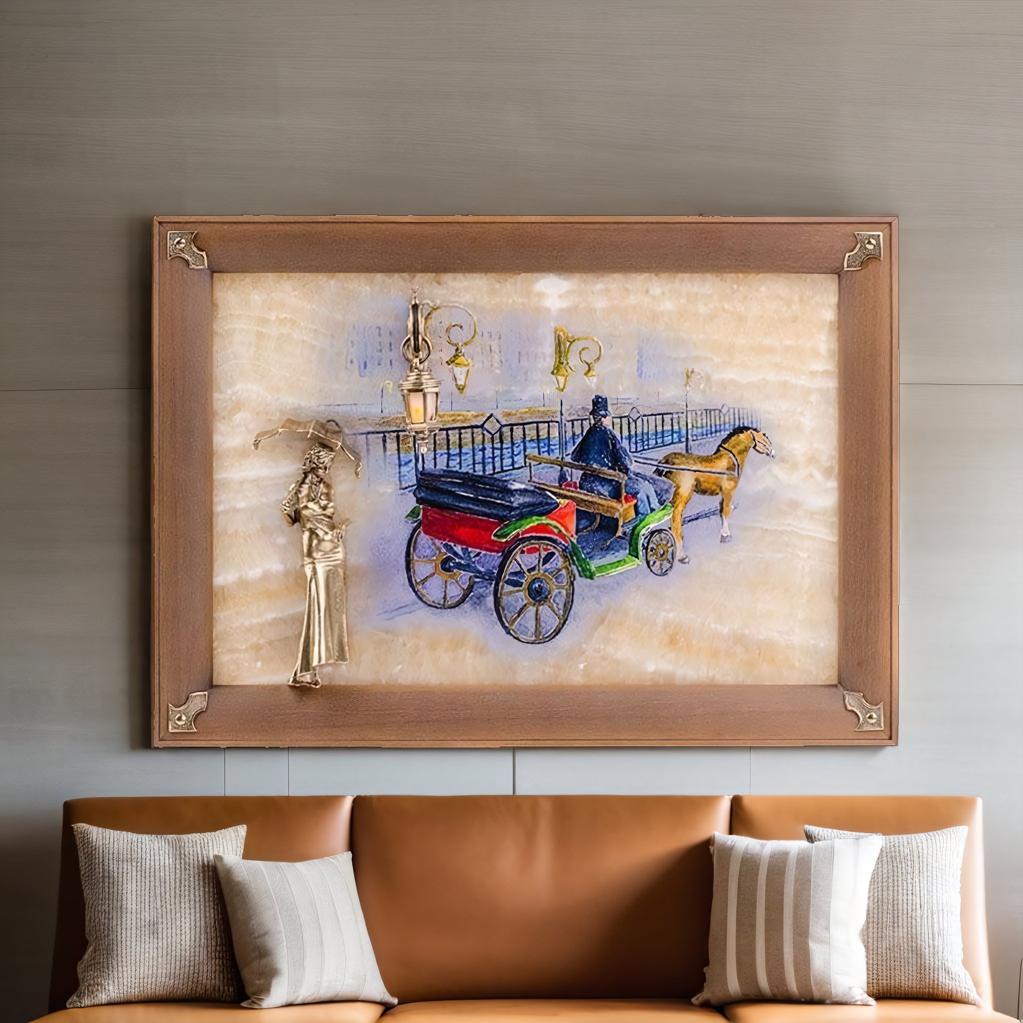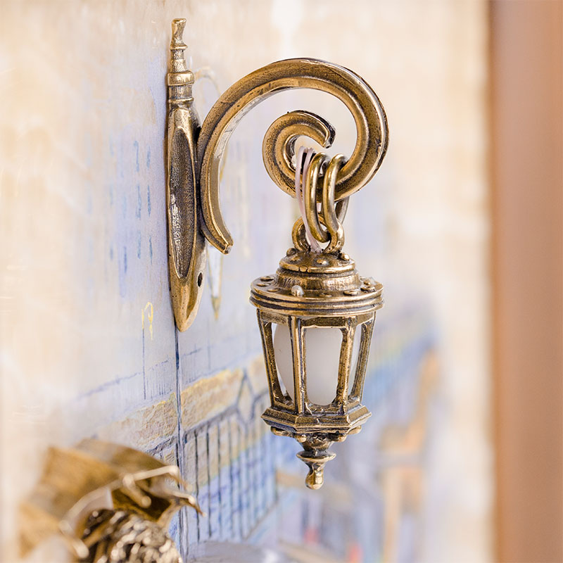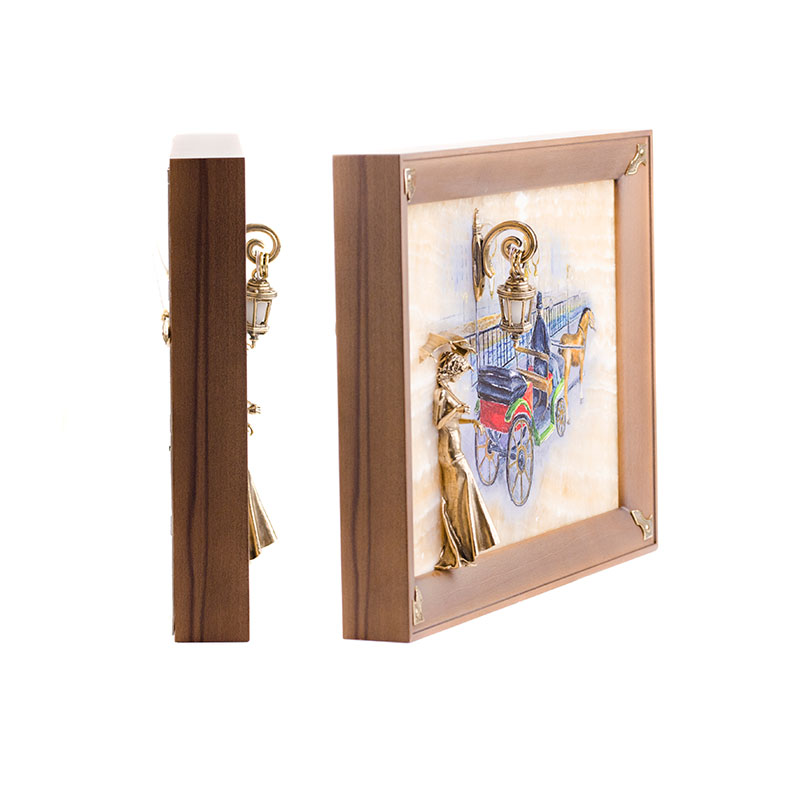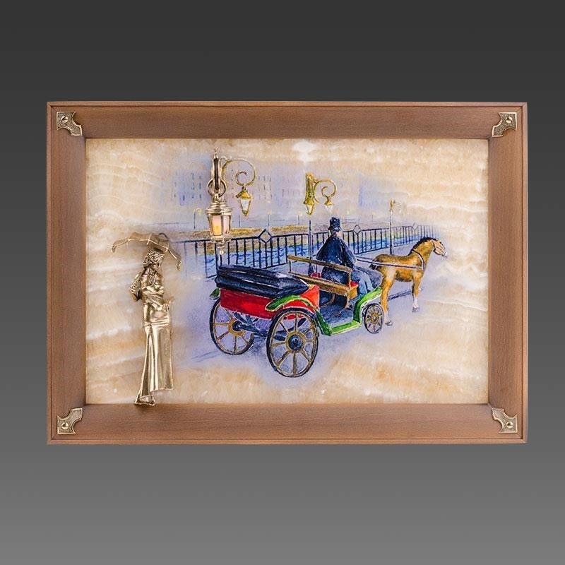 Бронзовая картина "Пара. Набережная. Мост" с подсветкой