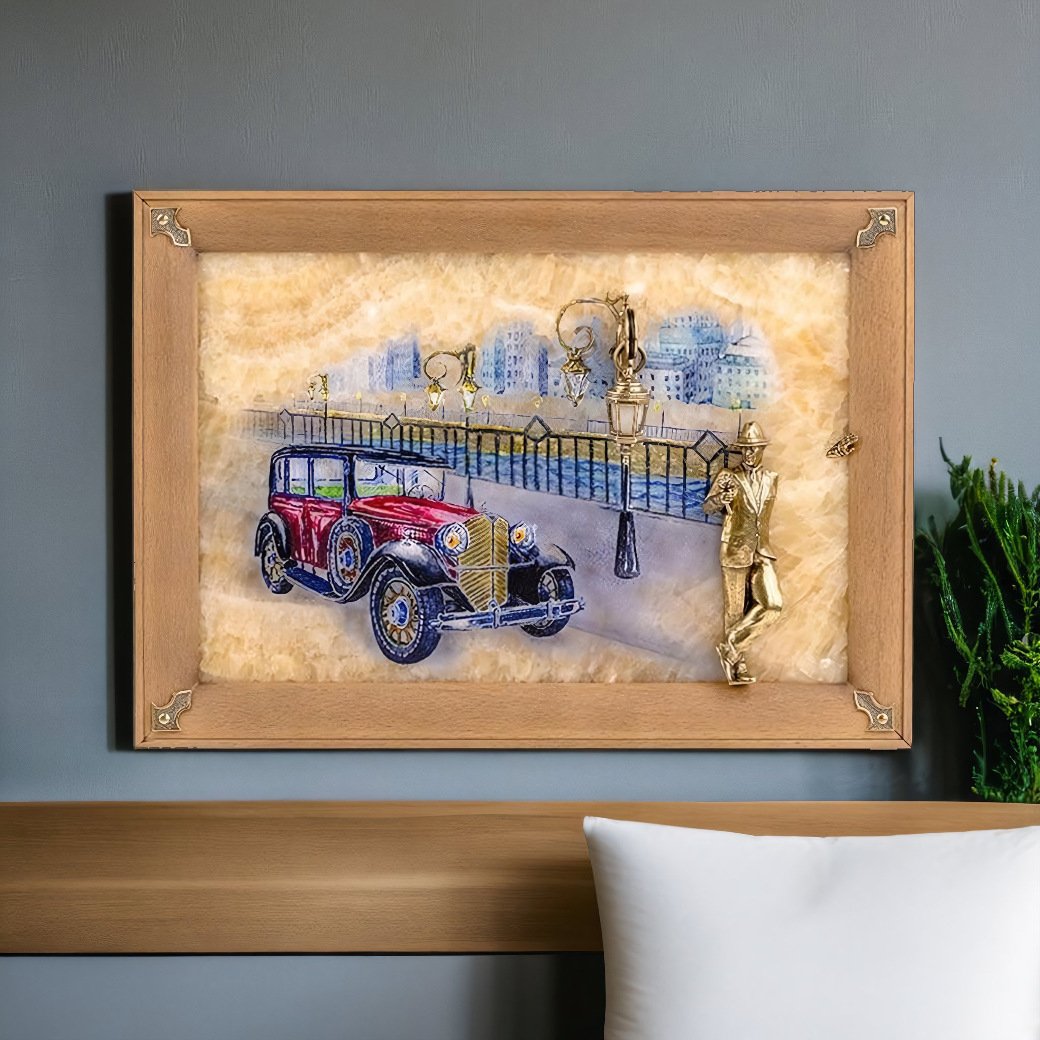 Бронзовая картина "Пара. Набережная. Мост" с подсветкой