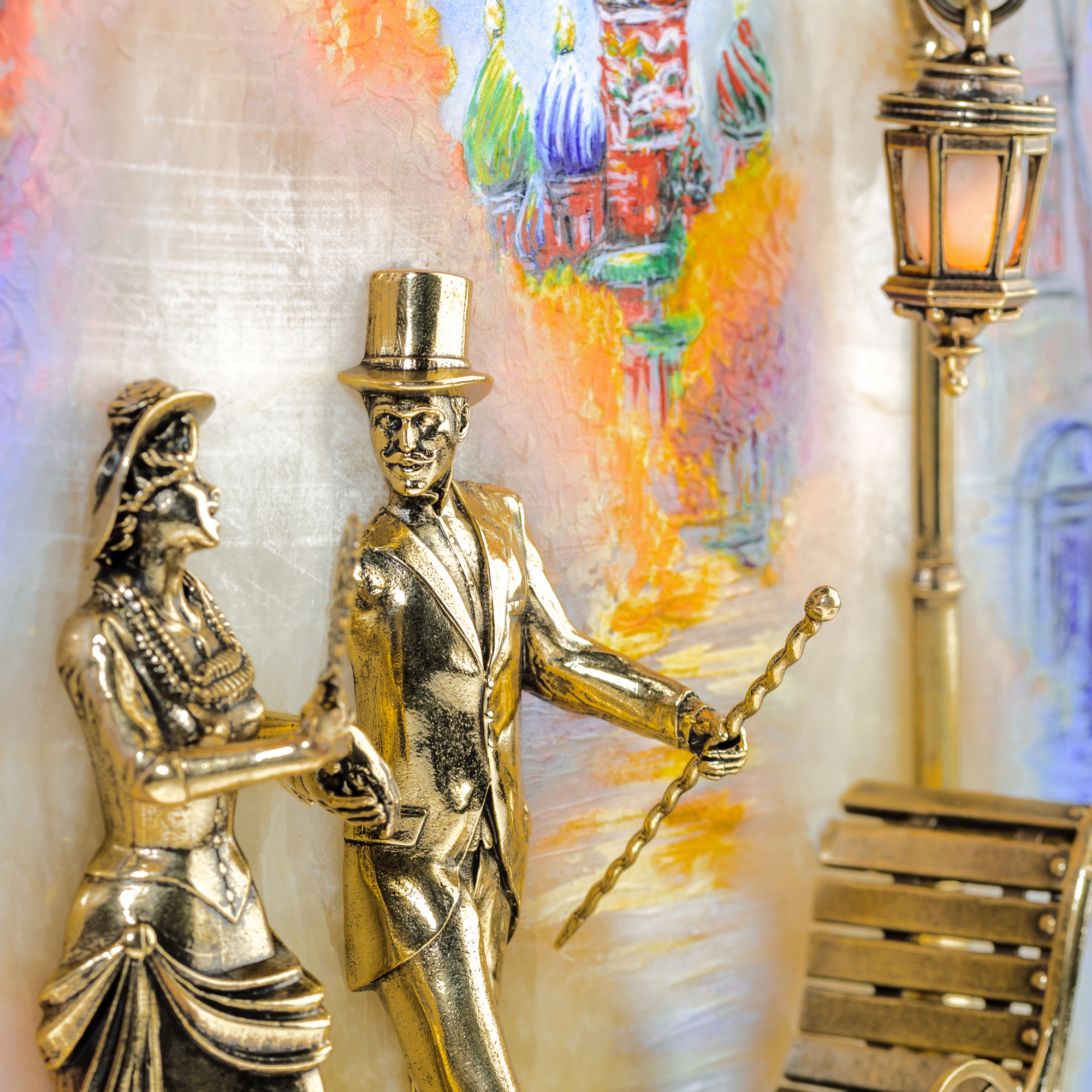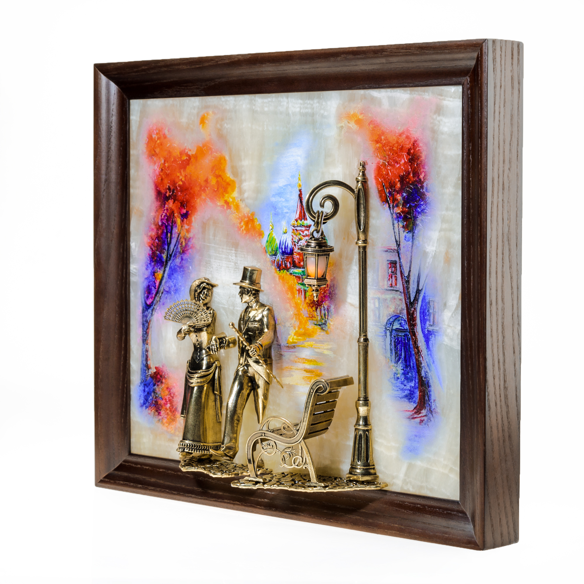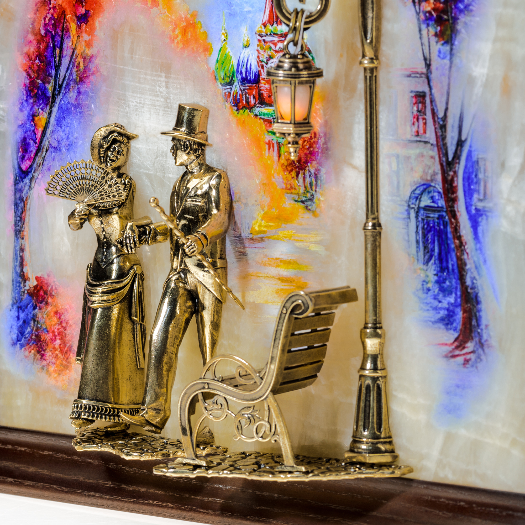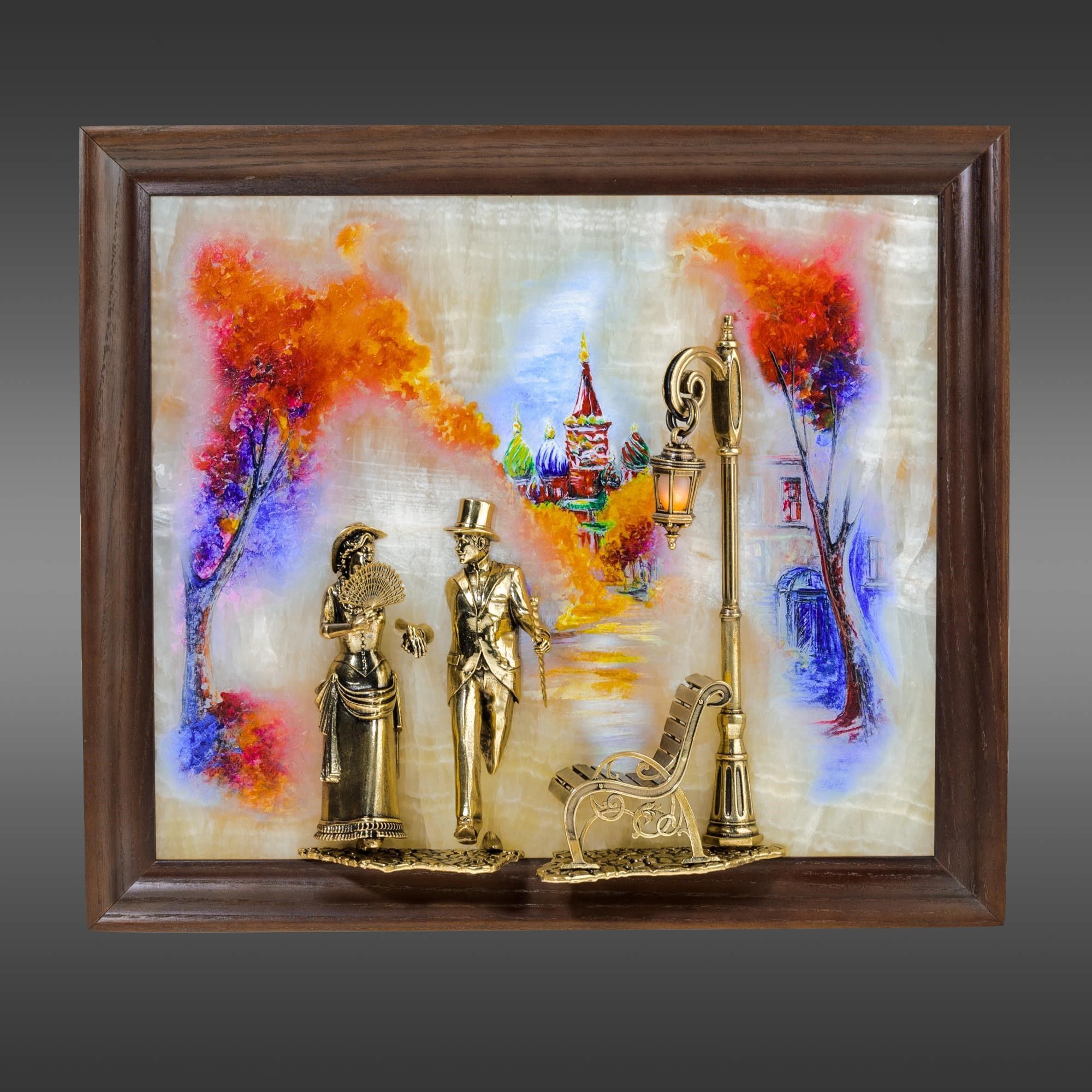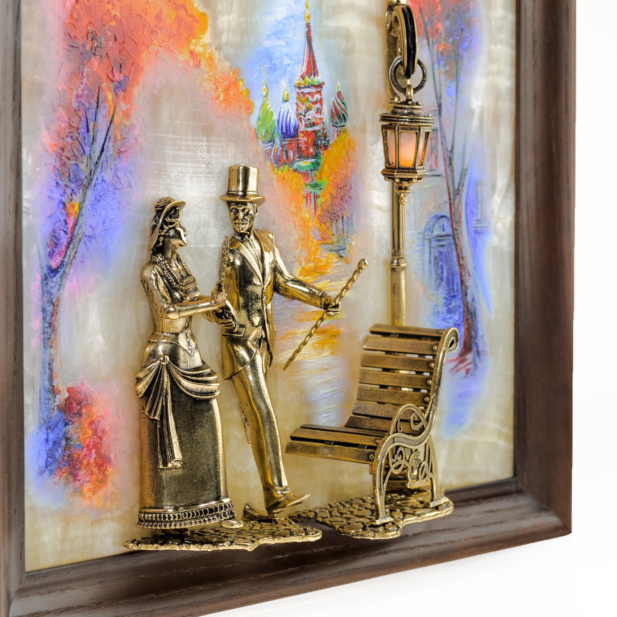 Бронзовая картина "Вечерняя прогулка. Москва" с подсветкой
