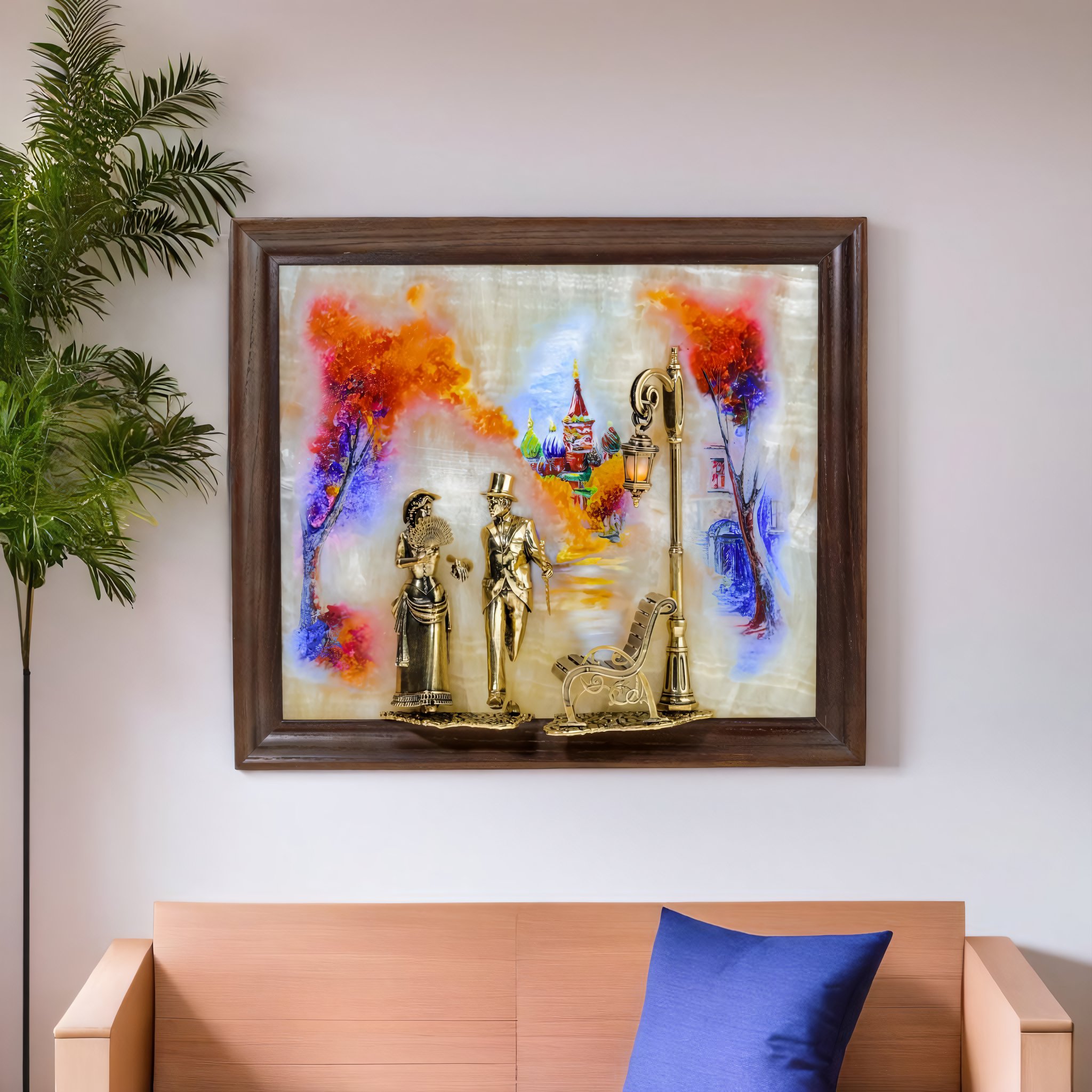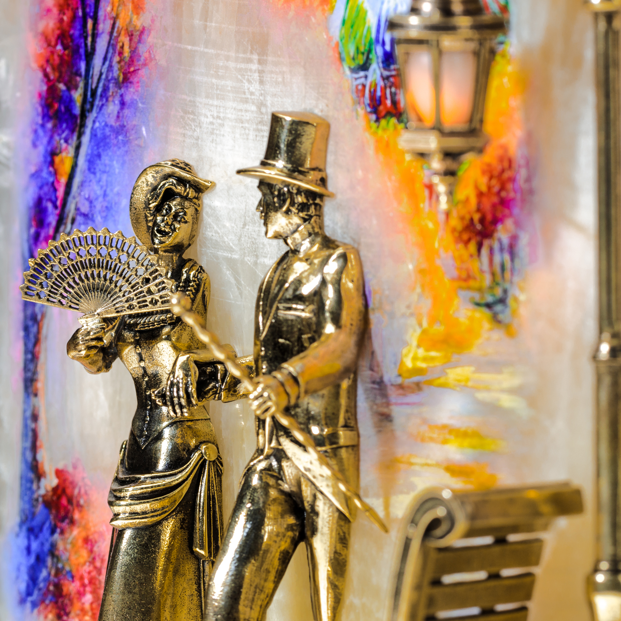 Бронзовая картина "Пара. Набережная" с подсветкой