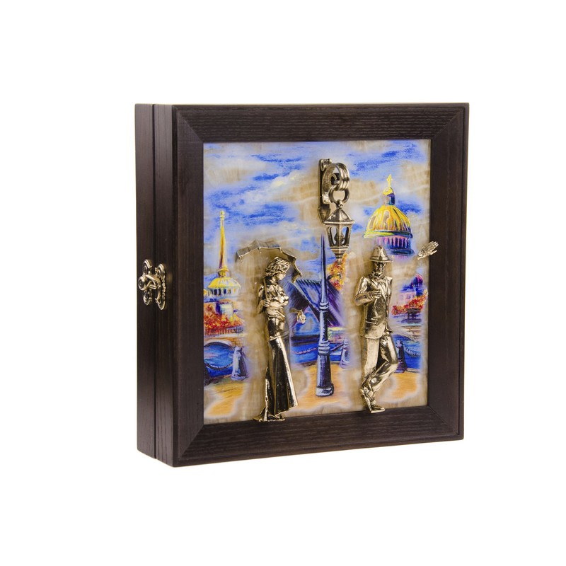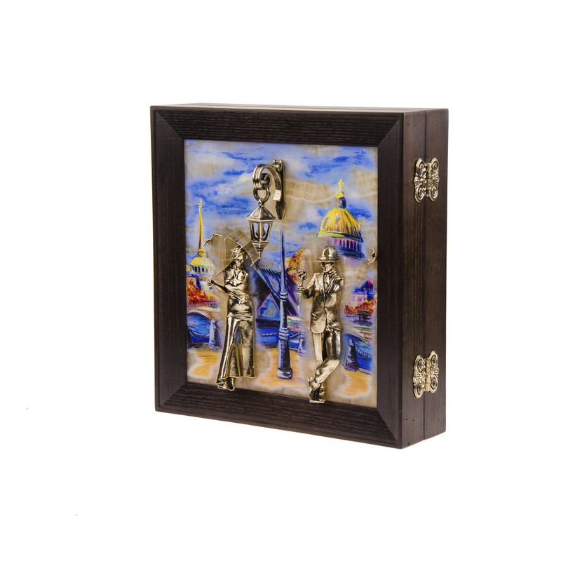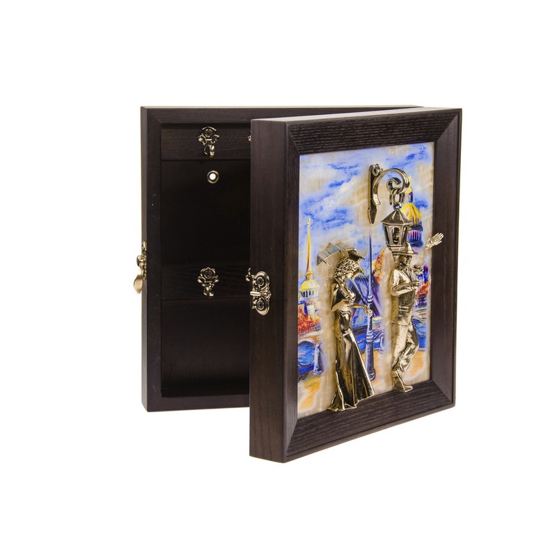 Бронзовая ключница настенная "Пара. Набережная. Мост" с подсветкой