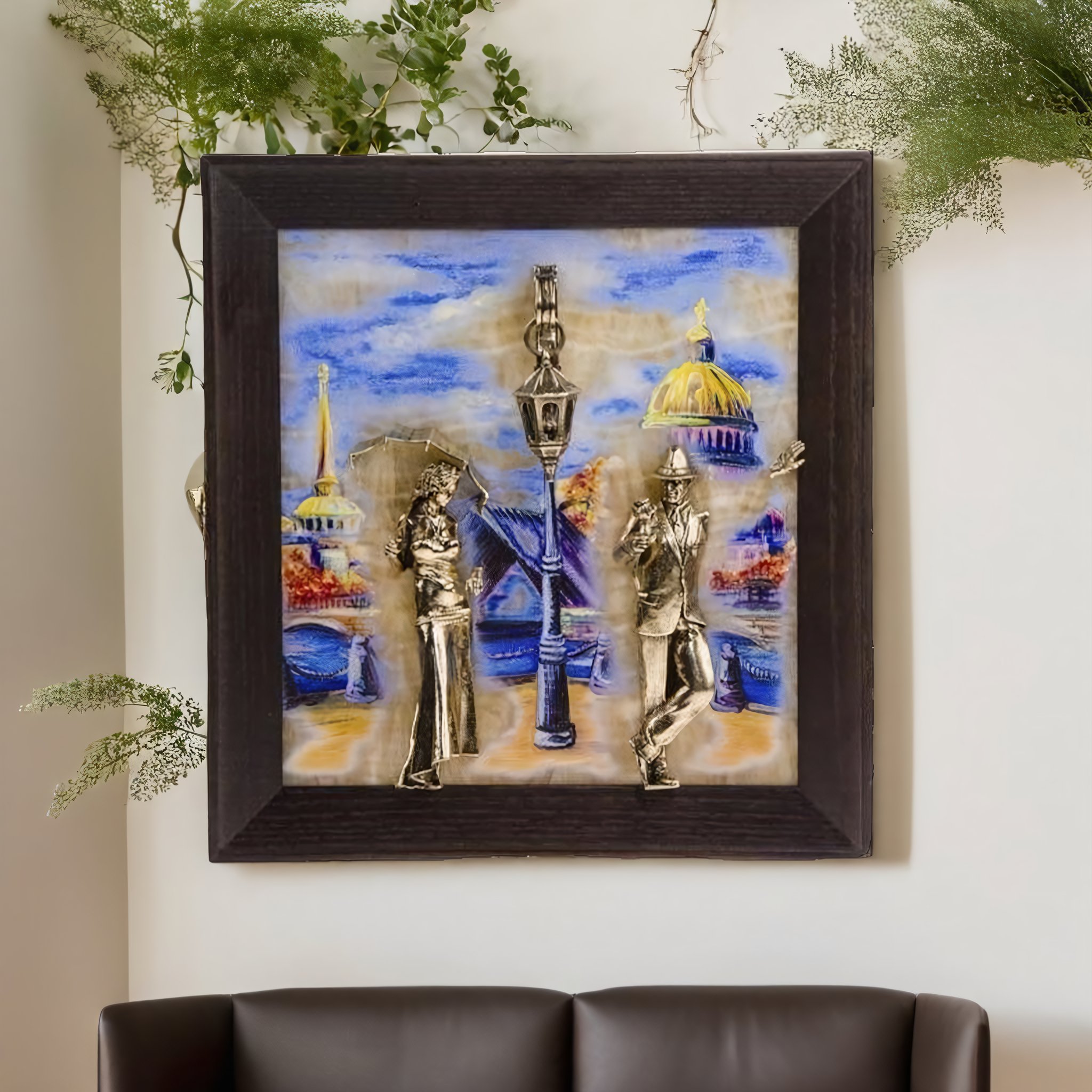 Бронзовая ключница настенная "Пара. Набережная" с подсветкой