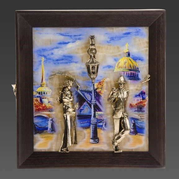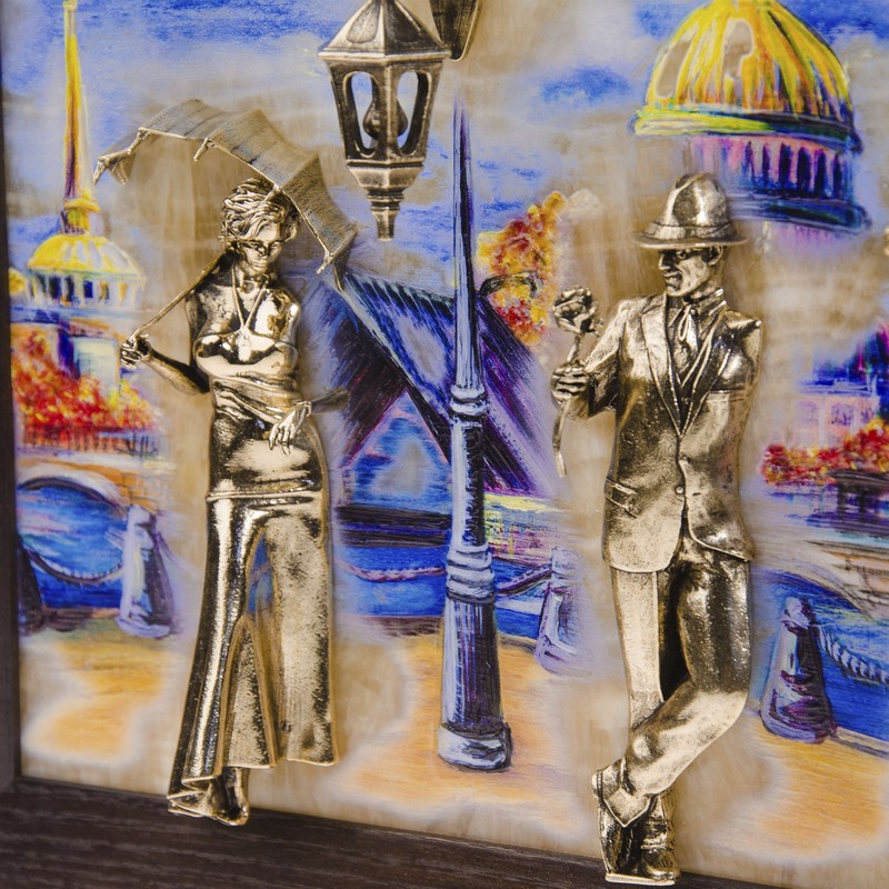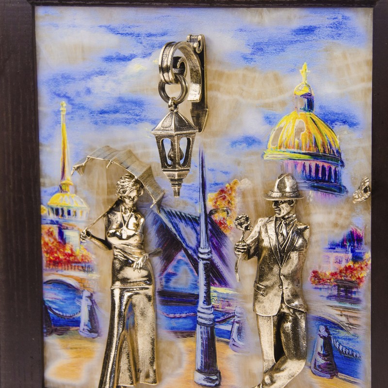 Густые краски вечера, опустившиеся на живописную северную столицу, потрясающий вид на здание Адмиралтейства и разведенный Дворцовый мост. Встреча двух влюбленных на набережной в назначенном месте под старинным фонарем. Галантный молодой человек с розой в руке, скрывая волнение, готовится произнести своей прекрасной возлюбленной важные слова, которые, конечно же будут, о любви. Девушка в тонком платье под зонтом томно поглядывает на часы на своем хрупком запястье, словно поторапливая своего нерешительного кавалера. Еще мгновение, и решится судьба двух влюбленных сердец в одном из самых романтичных мест на земле. |