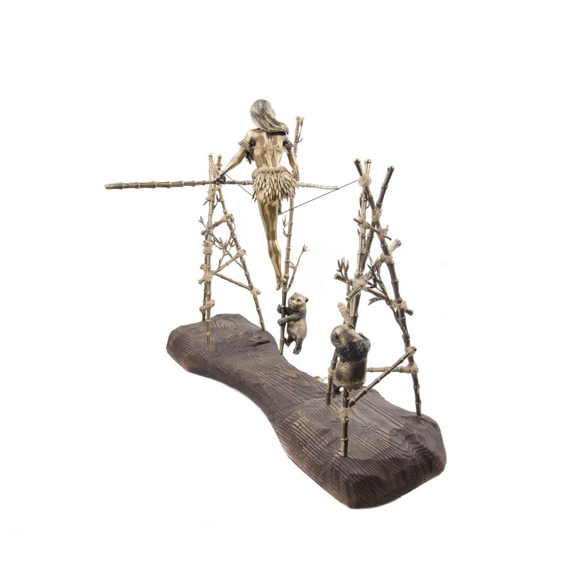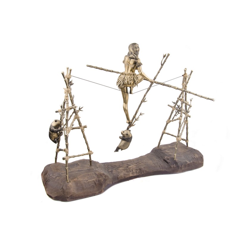 Бронзовая композиция «Балансирующая девушка с пандой»