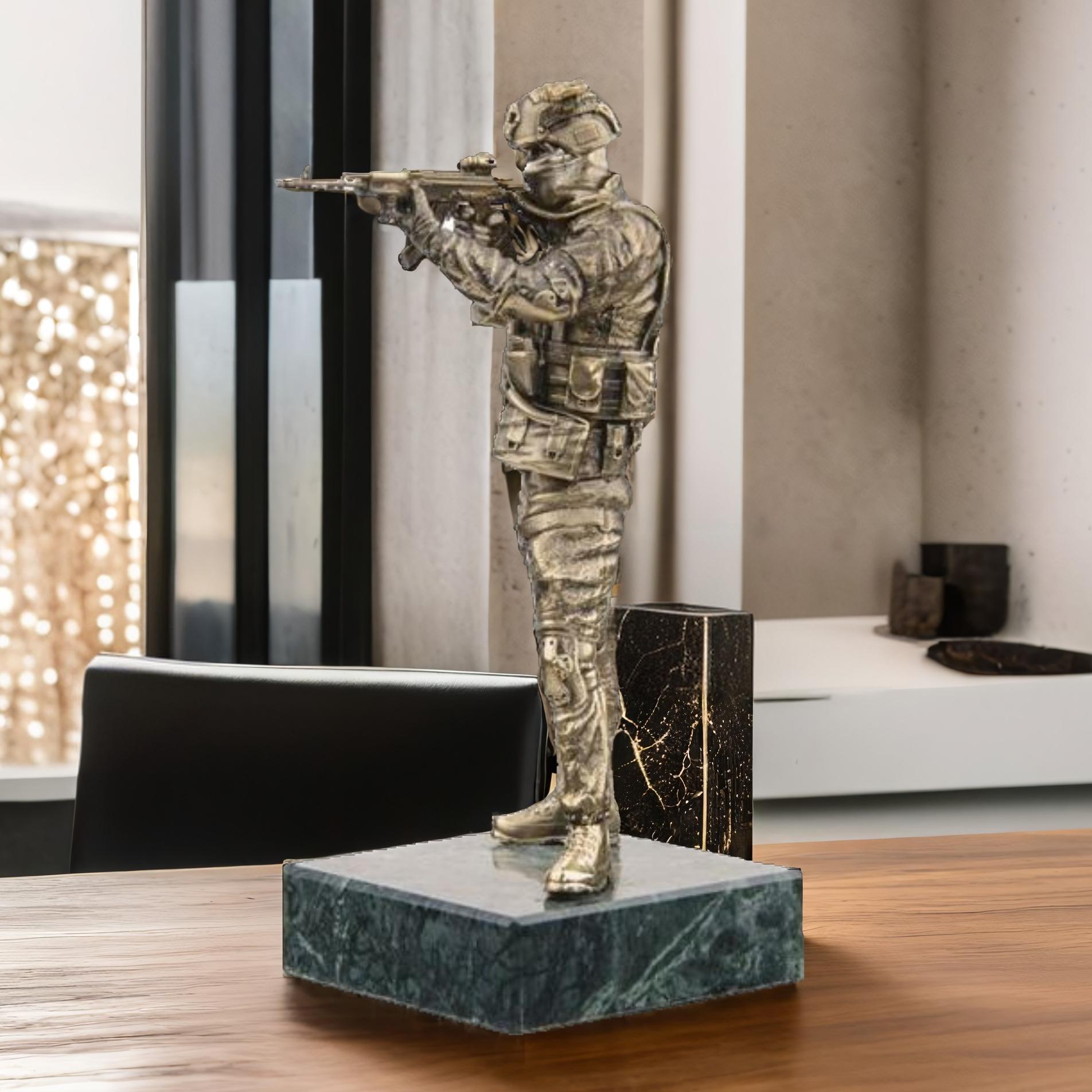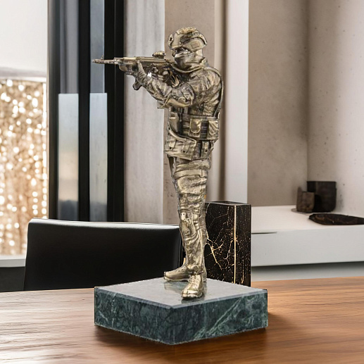 Впечатляющая Бронзовая статуэтка Спецназовец отличный выбор для тех, кто уважает мужество, силу и отвагу, символизируемые этим легендарным образом. Она идеально подойдёт в качестве подарка или украшения для дома или офиса. Бронзовая статуэтка Спецназовец отлично дополнит любой интерьер, добавив ему уникального шарма и изысканности.