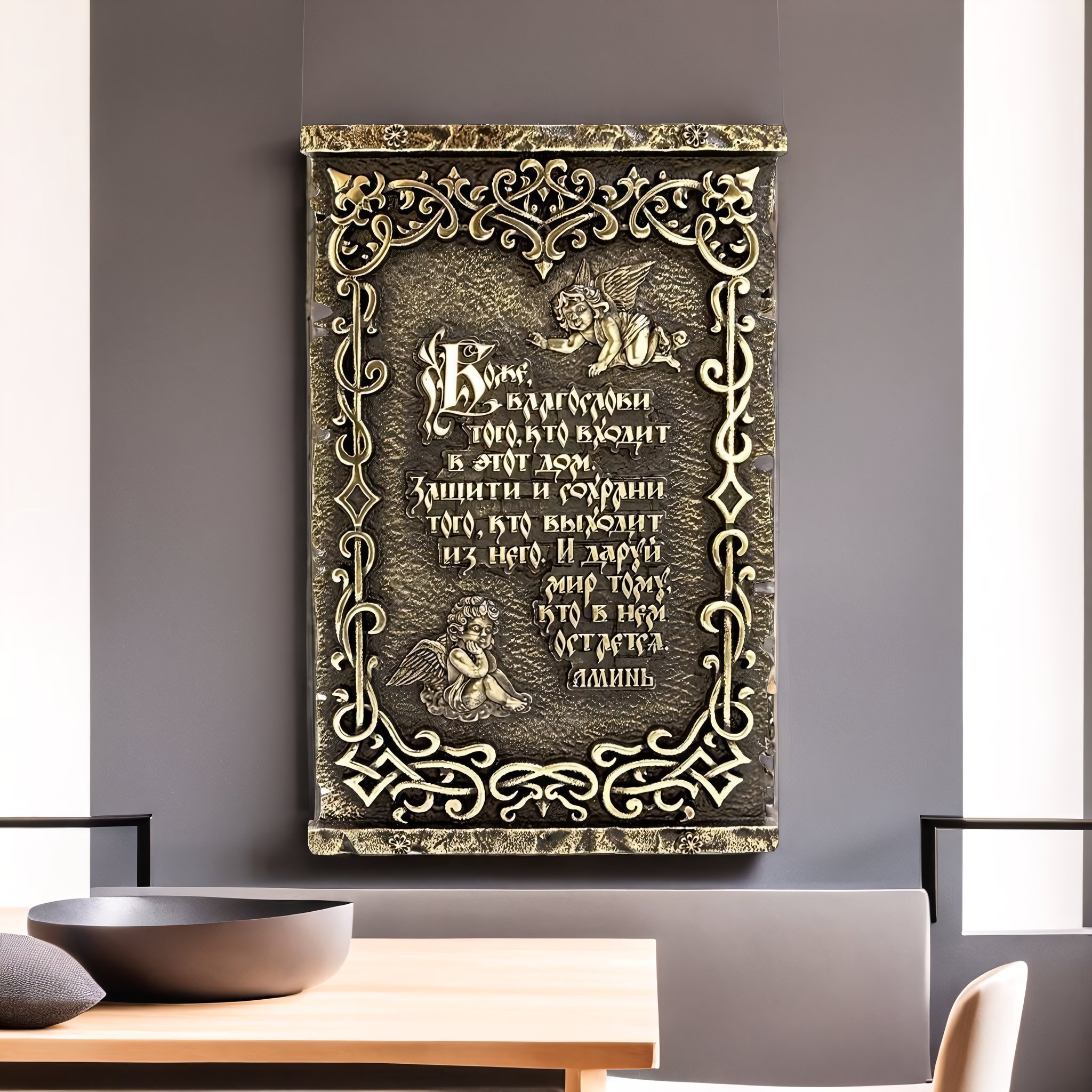 Украсьте ваш дом особенным красивым предметом — бронзовой табличкой Боже, Благослови. Она не только придаст ваших стенам уникальность и выразительность, но и поможет создать особую атмосферу спокойствия и благодати. Наша бронзовая табличка Боже, Благослови выполнена из высококачественного материала и отлично впишется в любой интерьер — будь то гостиная, спальня или кабинет.