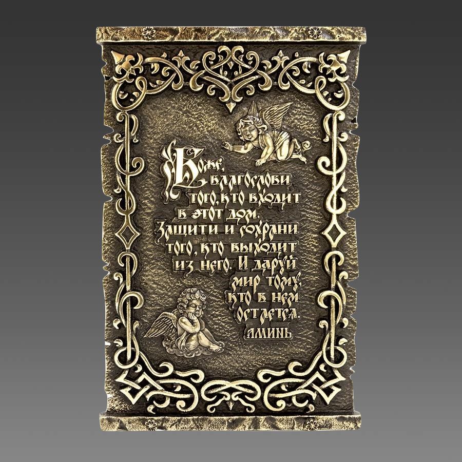В каждой табличке вручную выгравирована молитва Боже, благослови этот дом, что придает ей особую ценность и делает идеальным подарком для ваших близких..