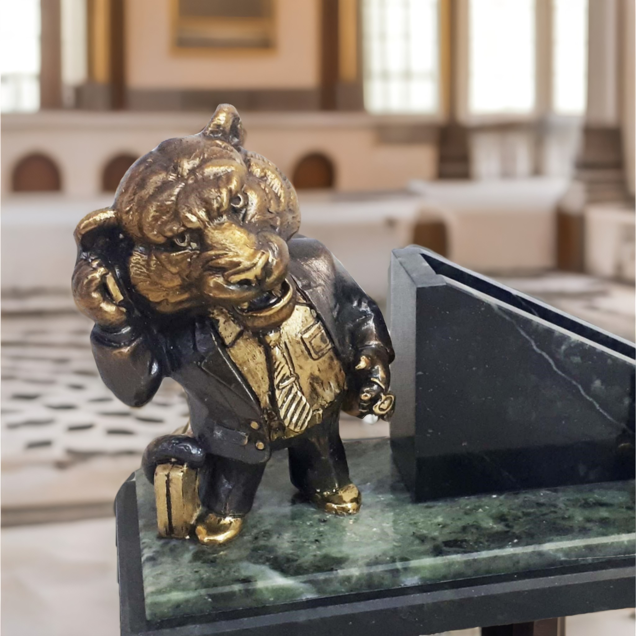 Бронзовые часы Тигр-бизнесмен — это не просто часы, это произведение искусства, которое добавит в ваш интерьер заметной индивидуальности и особого шарма.