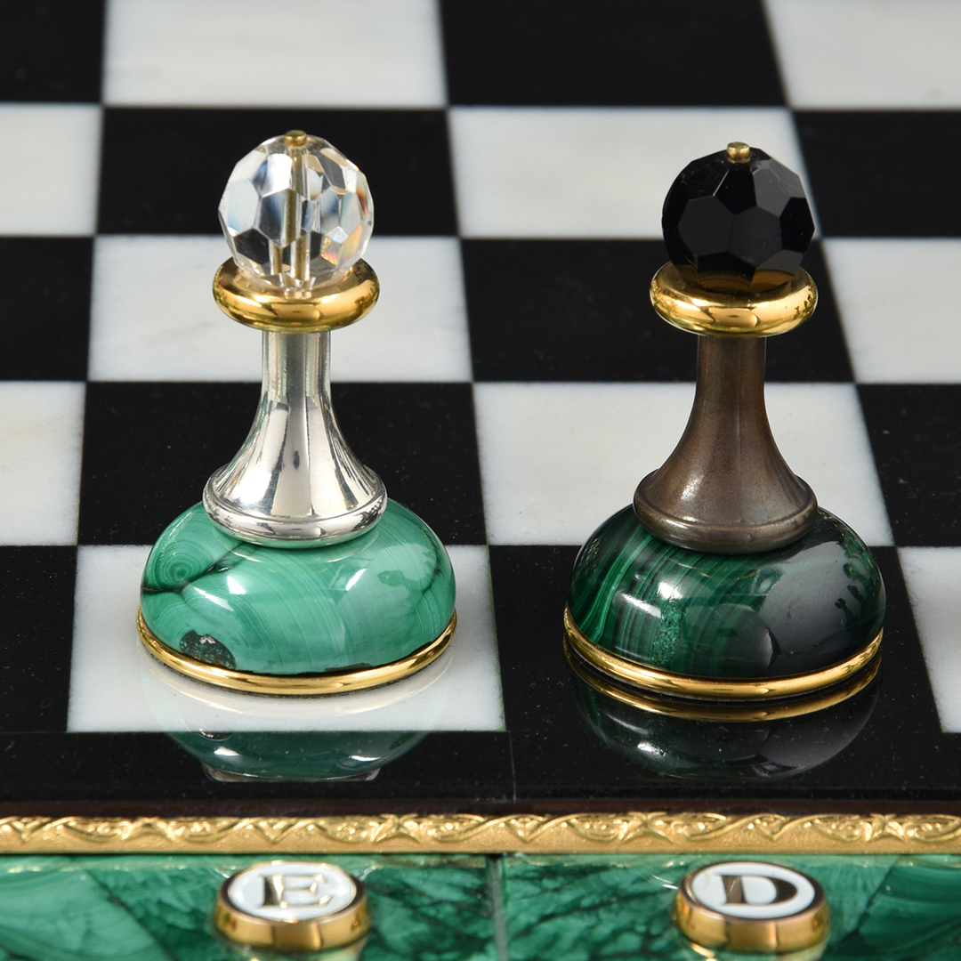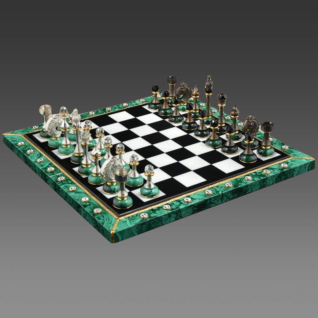 Эксклюзивные шахматы из малахита, долерита и мрамора