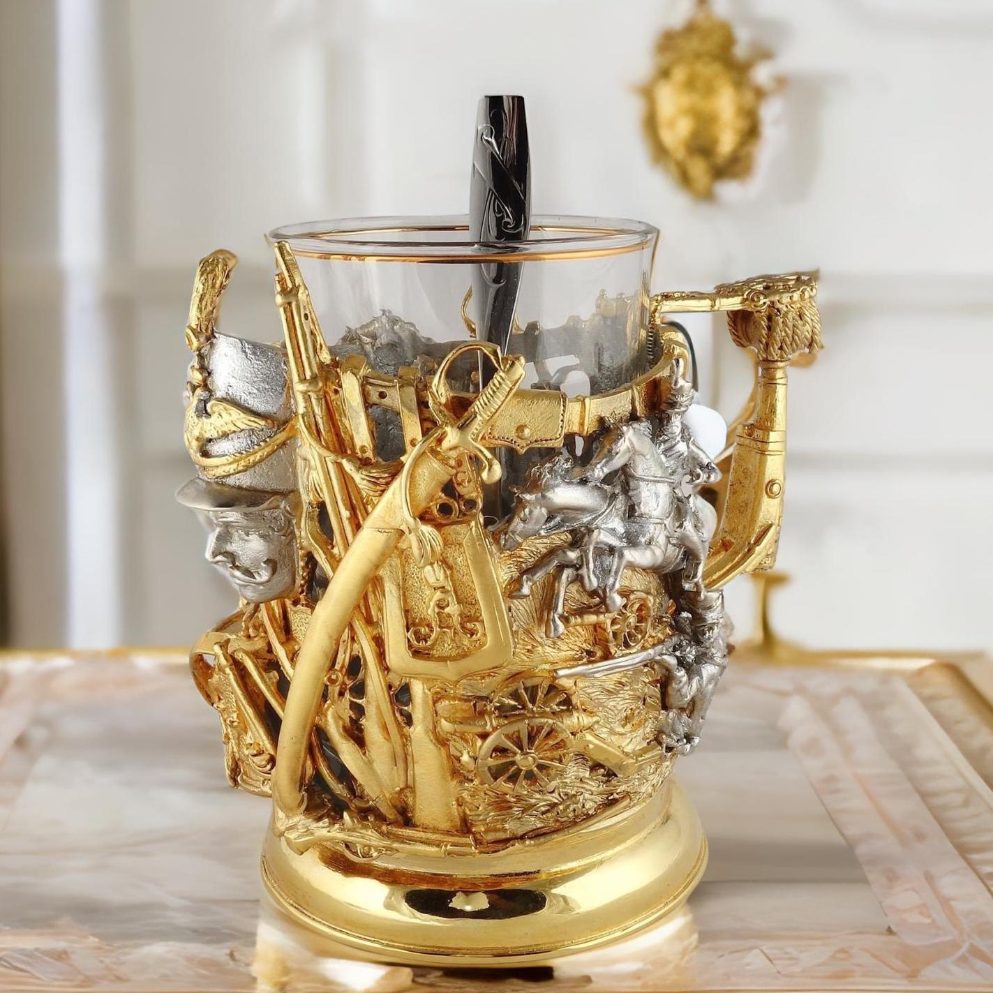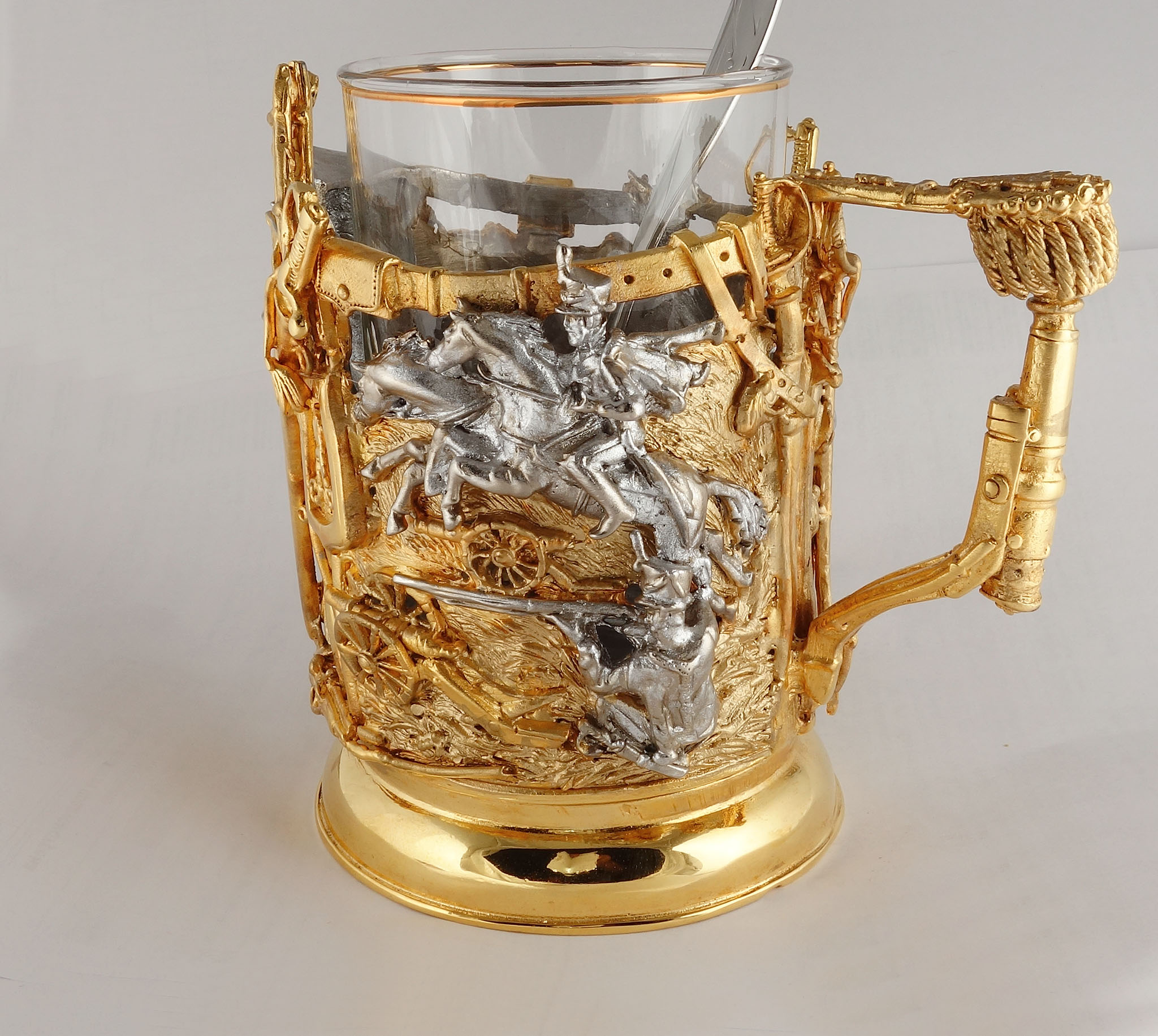 Элегантный и детально проработанный, подстаканник "Гусар" отражает дух и гордость русских гусаров. Рельефные изображения гусаров на лошадях, выполненные с превосходной точностью, делают его выдающимся произведением искусства. Идеально подойдет в качестве подарка для историки, любителей военного искусства или тех, кто ценит русскую культуру и историю. Этот подстаканник будет отличным дополнением к коллекции или просто красивым украшением дома. |