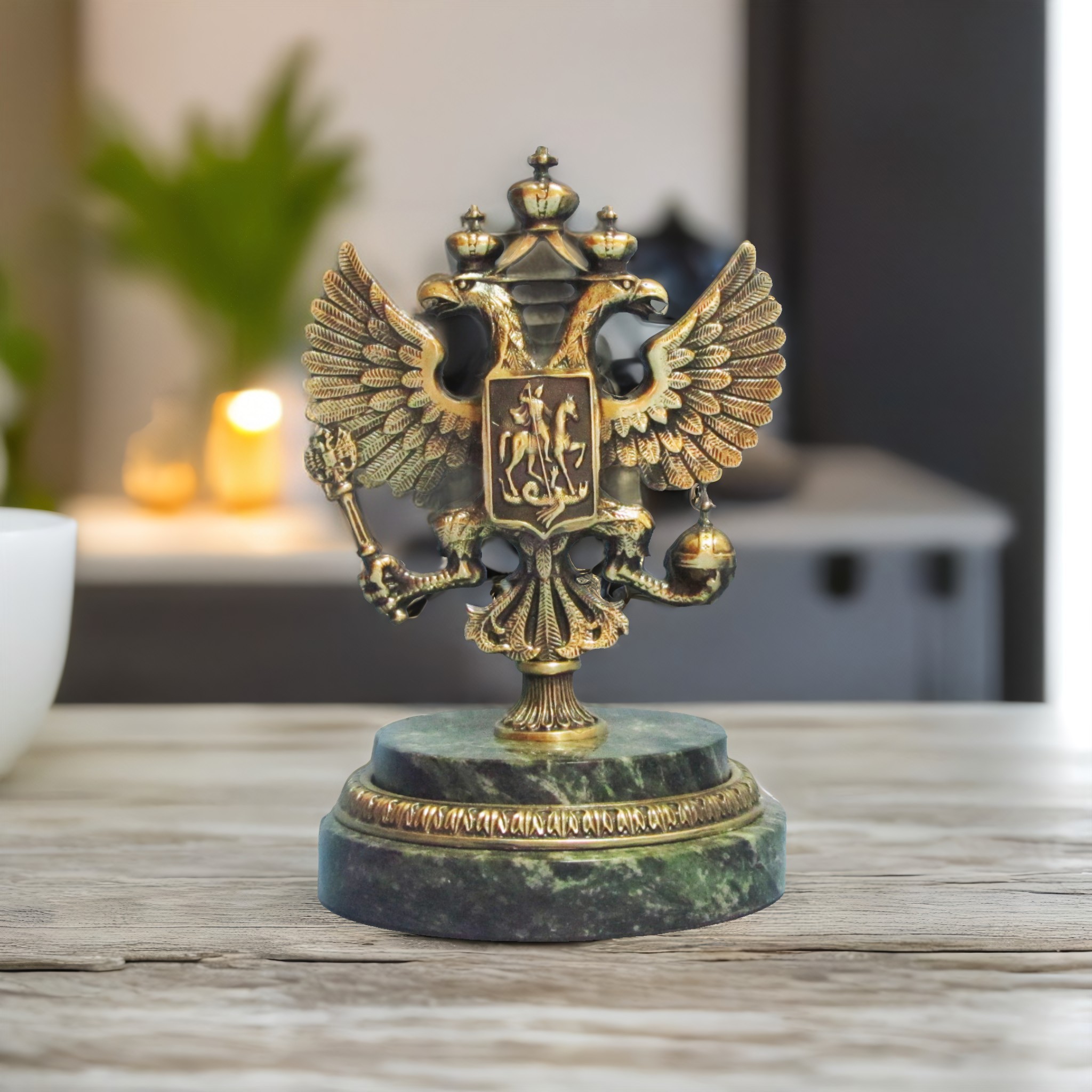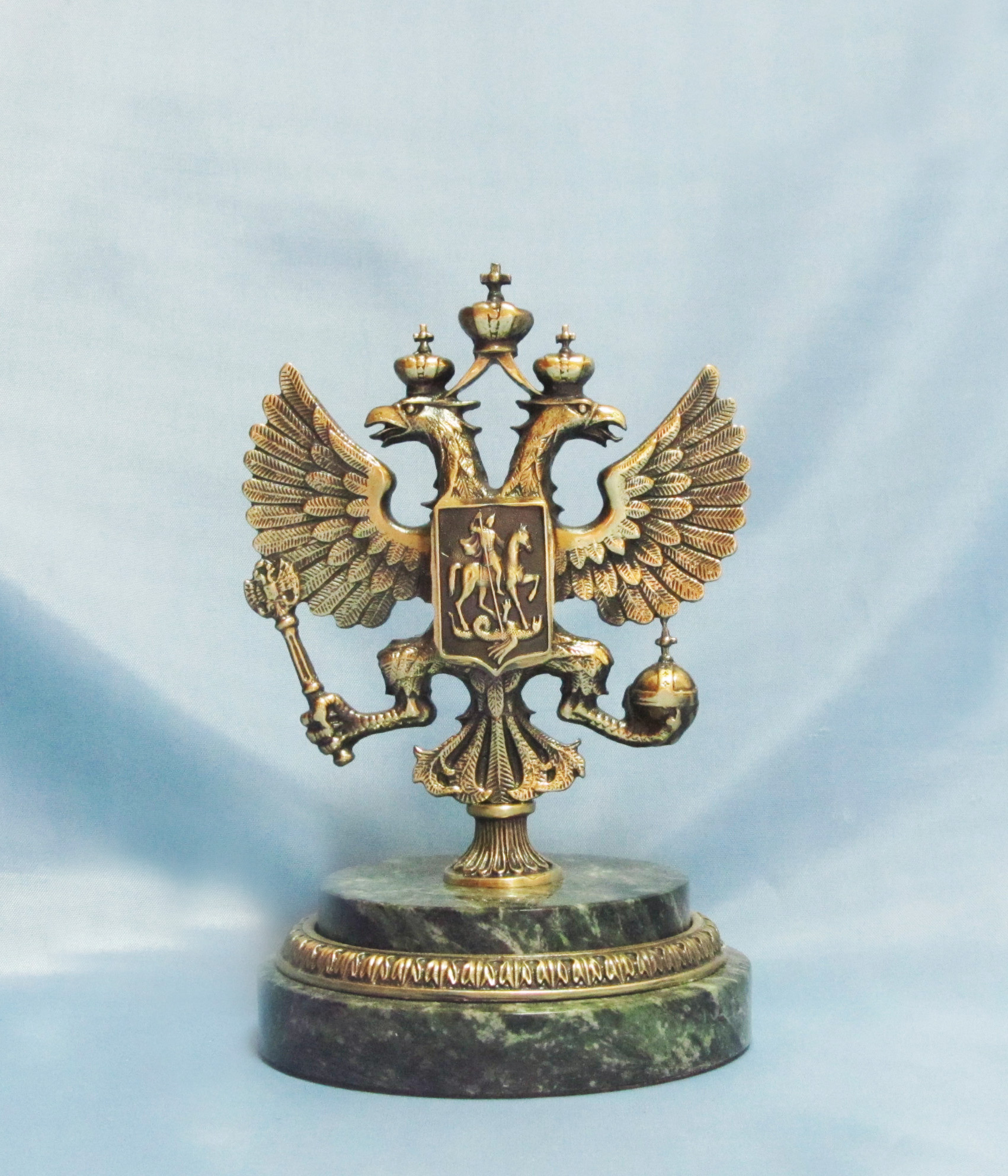 Усовершенствуйте свою коллекцию сувениров с артикулом исключительного качества. Мы гордимся, предложив Вам наш новый товар — Бронзовый сувенир Герб Российский c основанием из змеевика. Уникальные детали дизайна, гармоничная бронзовая отделка и высококачественная ручная работа делают его продуктом, который обязательно вызовет восхищение. Этот сувенир — идеальный подарок для любого ценителя уникальных произведений искусства.