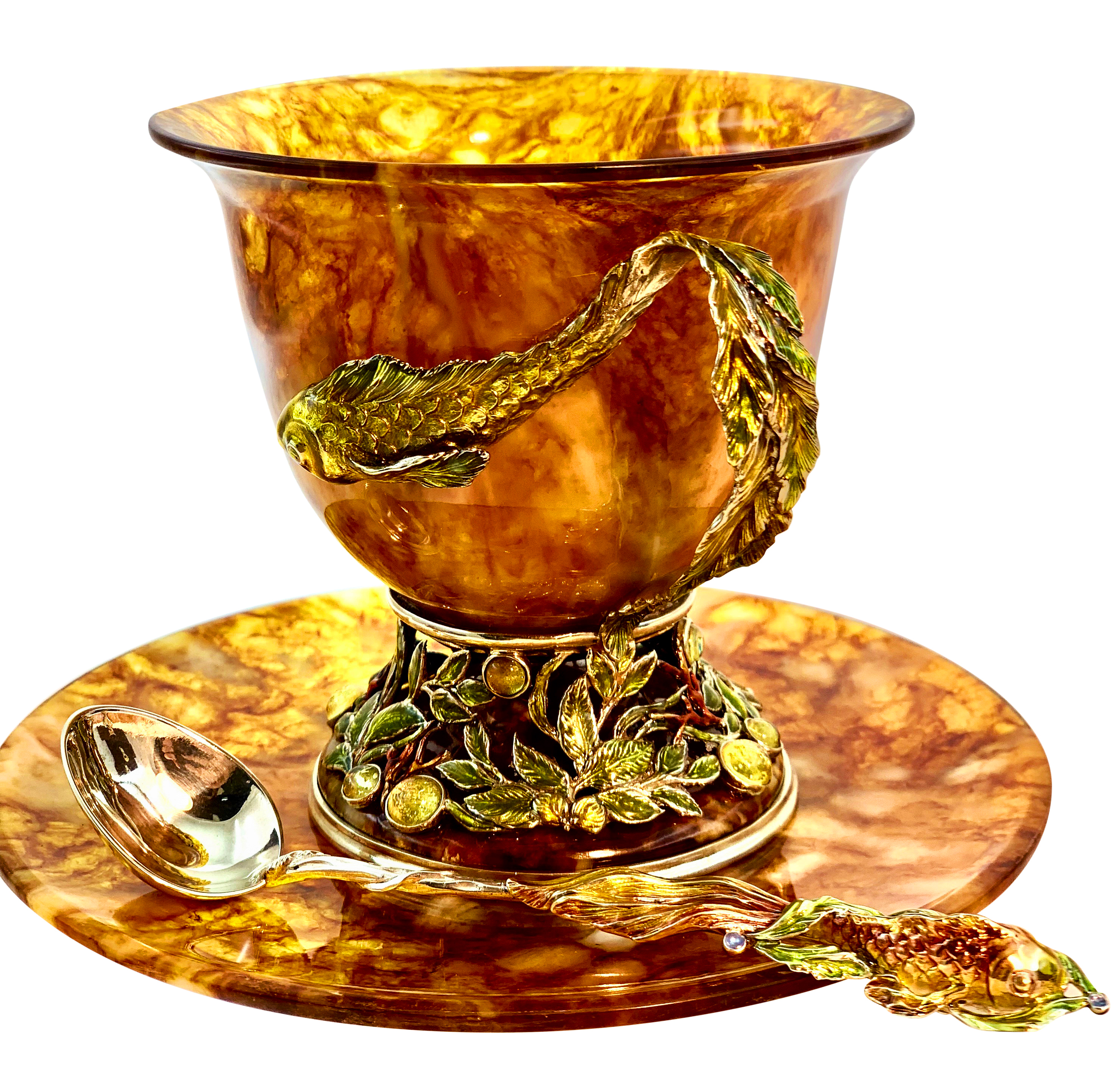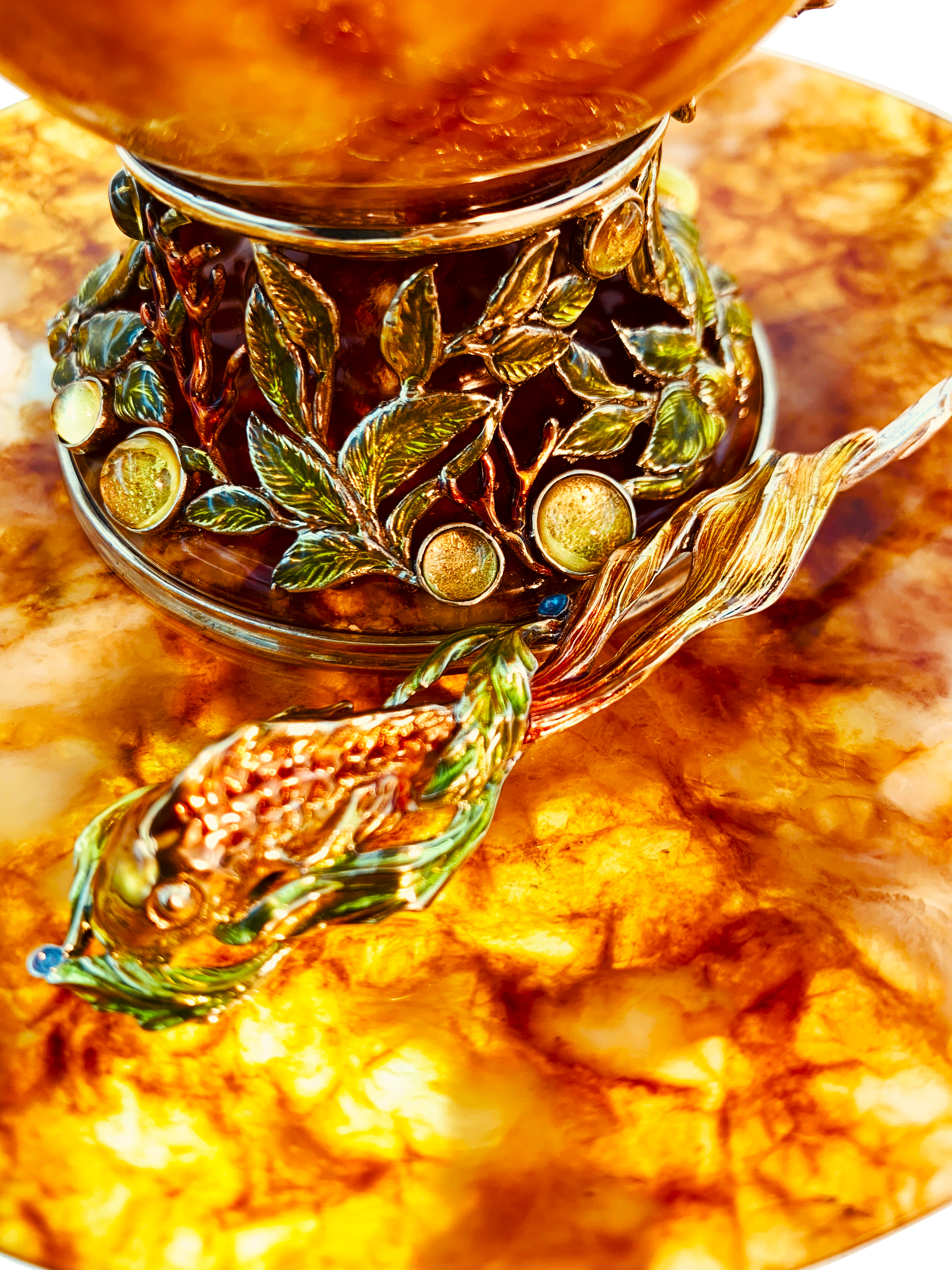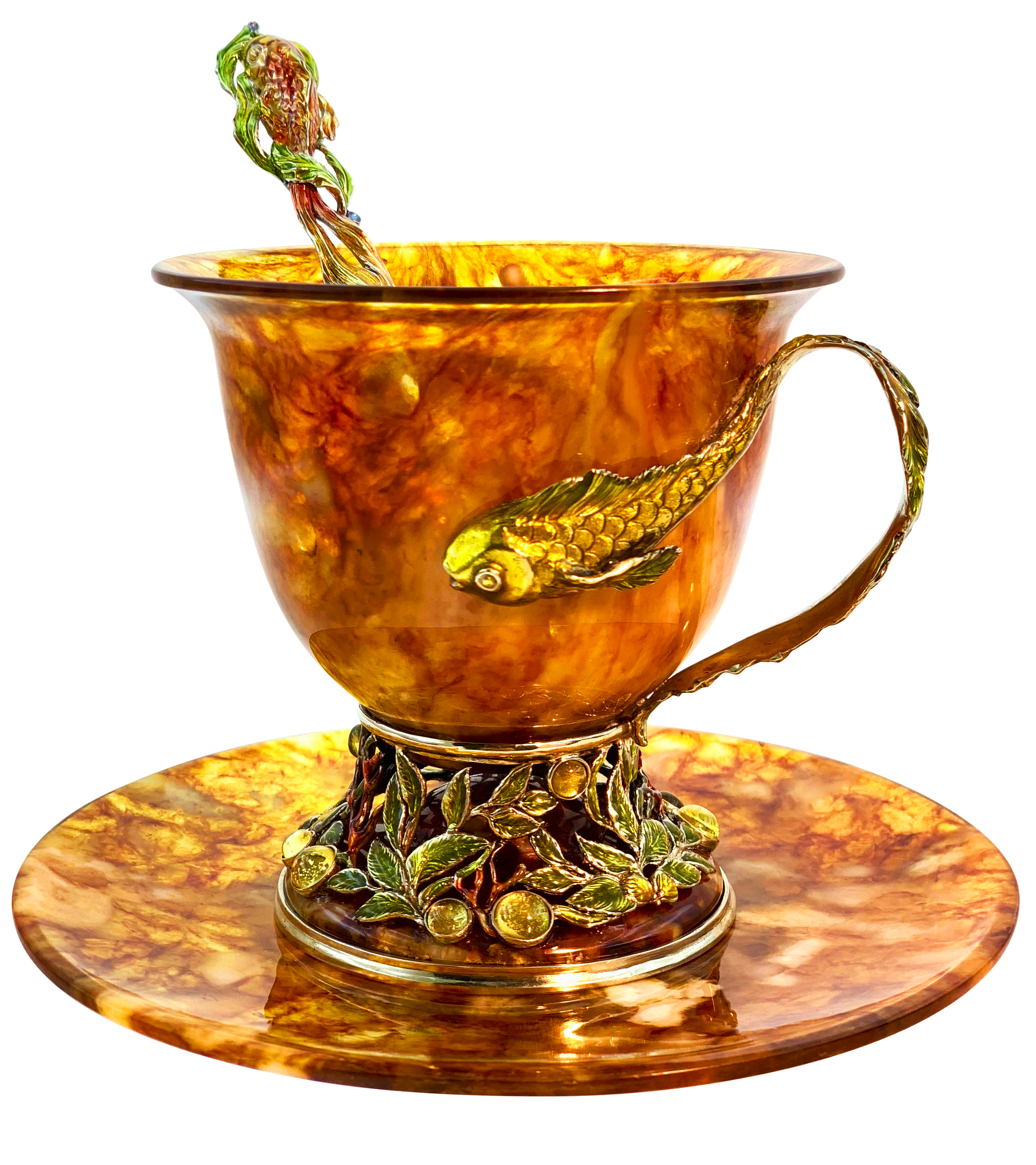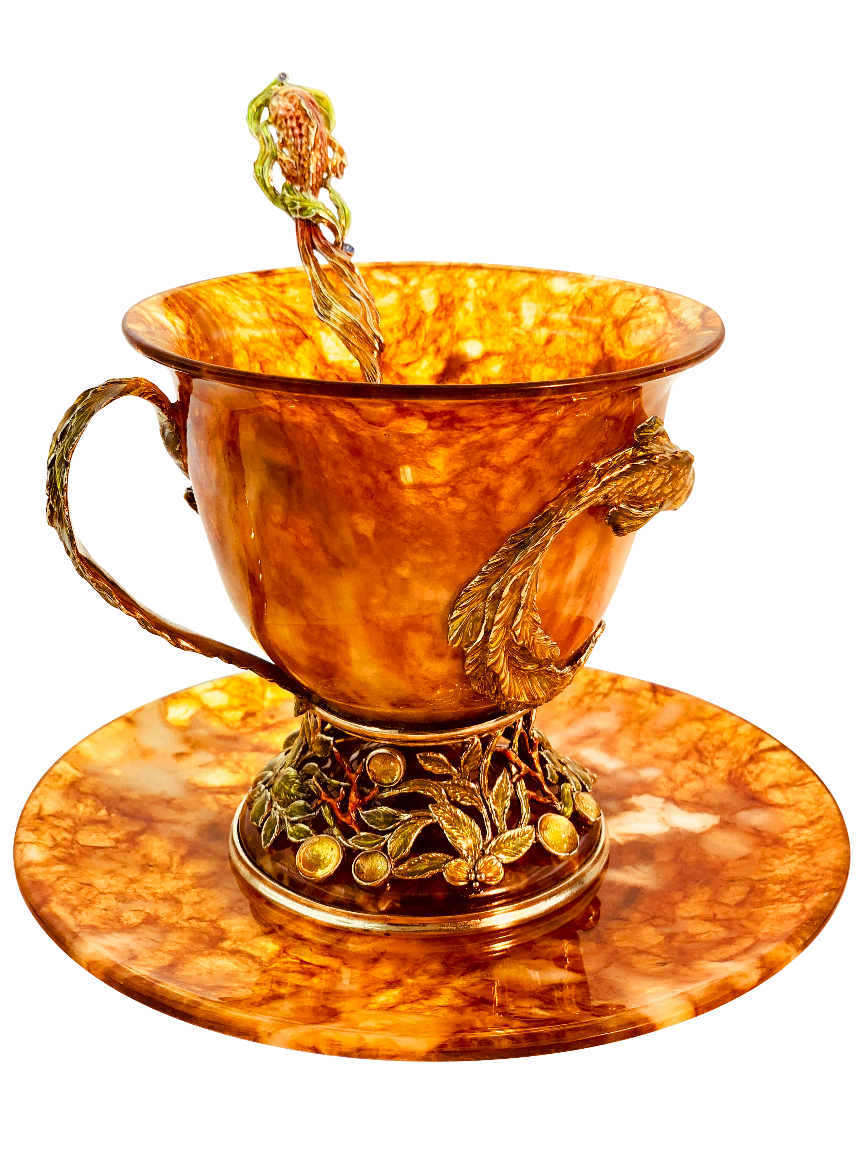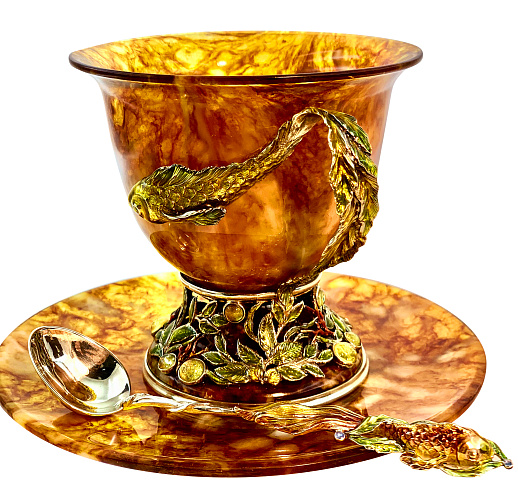 Чашка чайная ажурная из янтаря с ложкой