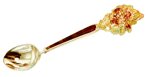 Ложка из серебра 875 пробы, отделана янтарем и эмалью.
