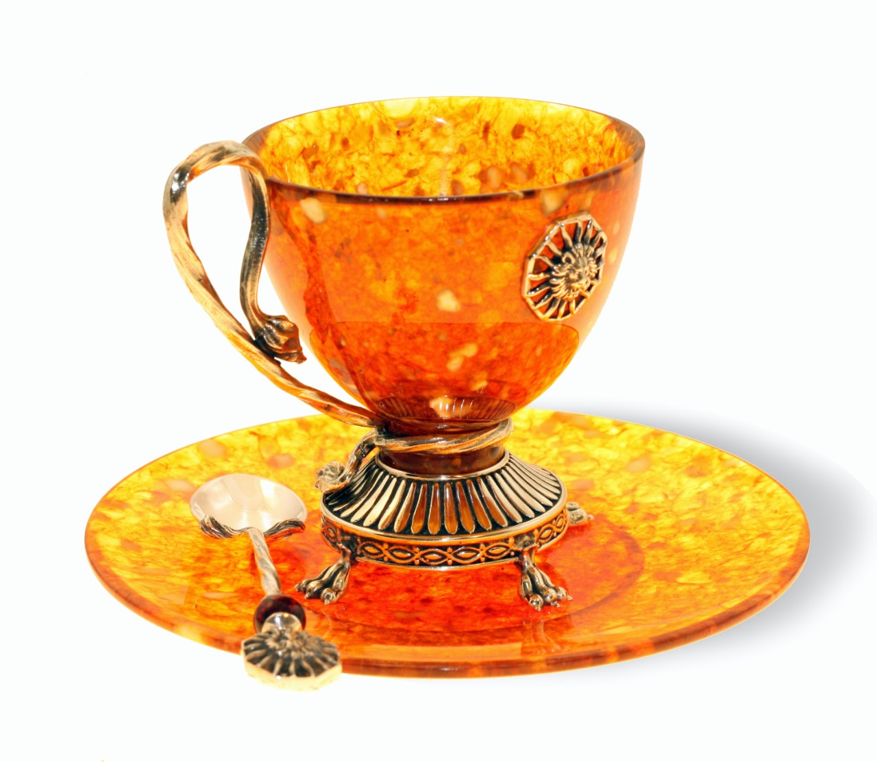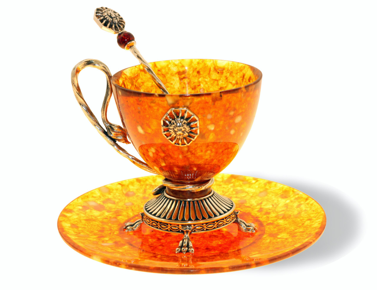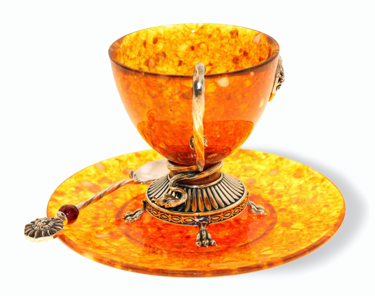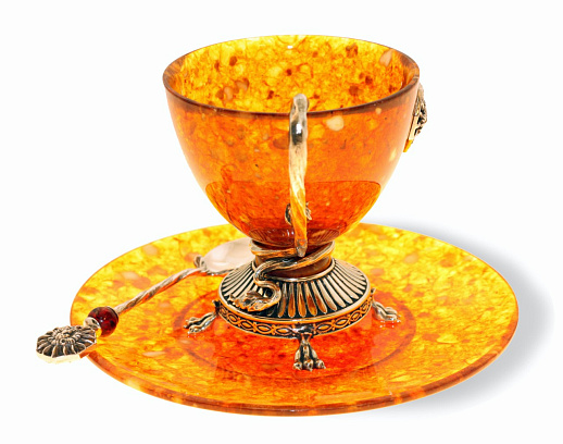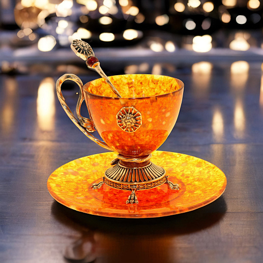 Настоящий шедевр искусства и ремесла: чайная чашка из янтаря с бронзовыми элементами плюс в комплект входит уникальная ложечка. Это не просто посуда, это предмет искусства, который подчеркнет ваш высокий статус и исключительный вкус. Подарите себе особенные моменты чаепития с нашей чайной чашкой из янтаря.