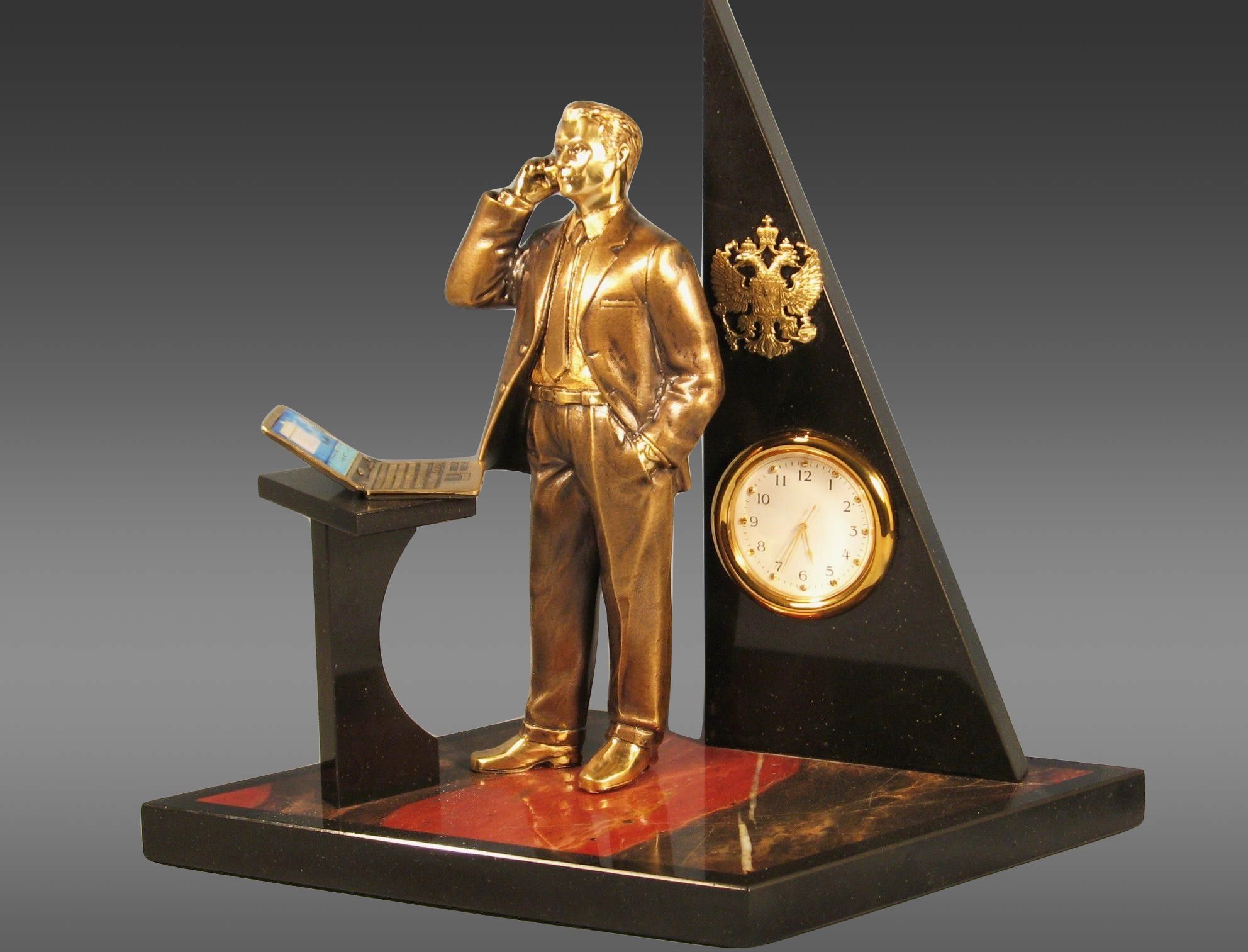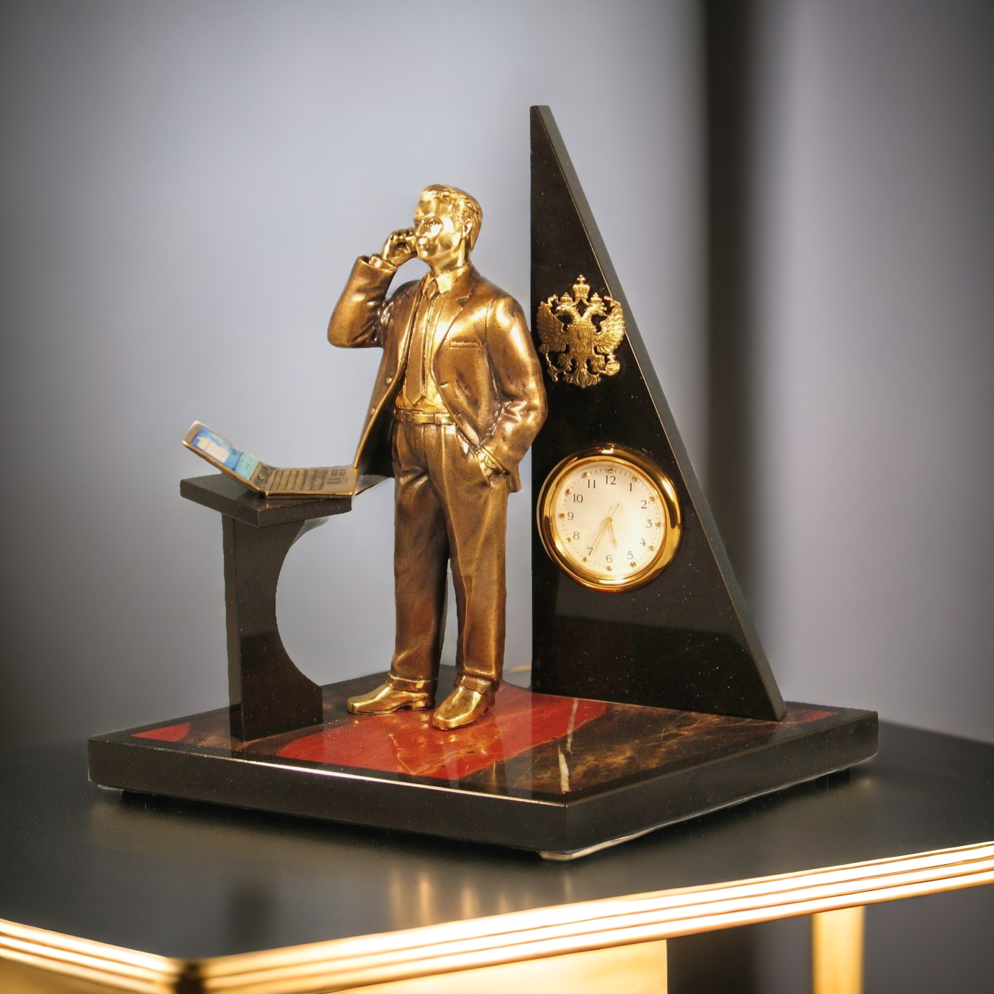 Представляем Вам отличное решение, когда Вы хотите не просто поздравить, но и поразить своим вкусом и утонченностью — настольные часы из яшмы и долерита. Эти часы — не просто предмет интерьера. Есть что-то особенное в их уникальном дизайне и выраженном стилистическом направлении. Они гармонично сочетают в себе строгость и элегантность, позволяя подчеркнуть статус и бескомпромиссный вкус своего обладателя.