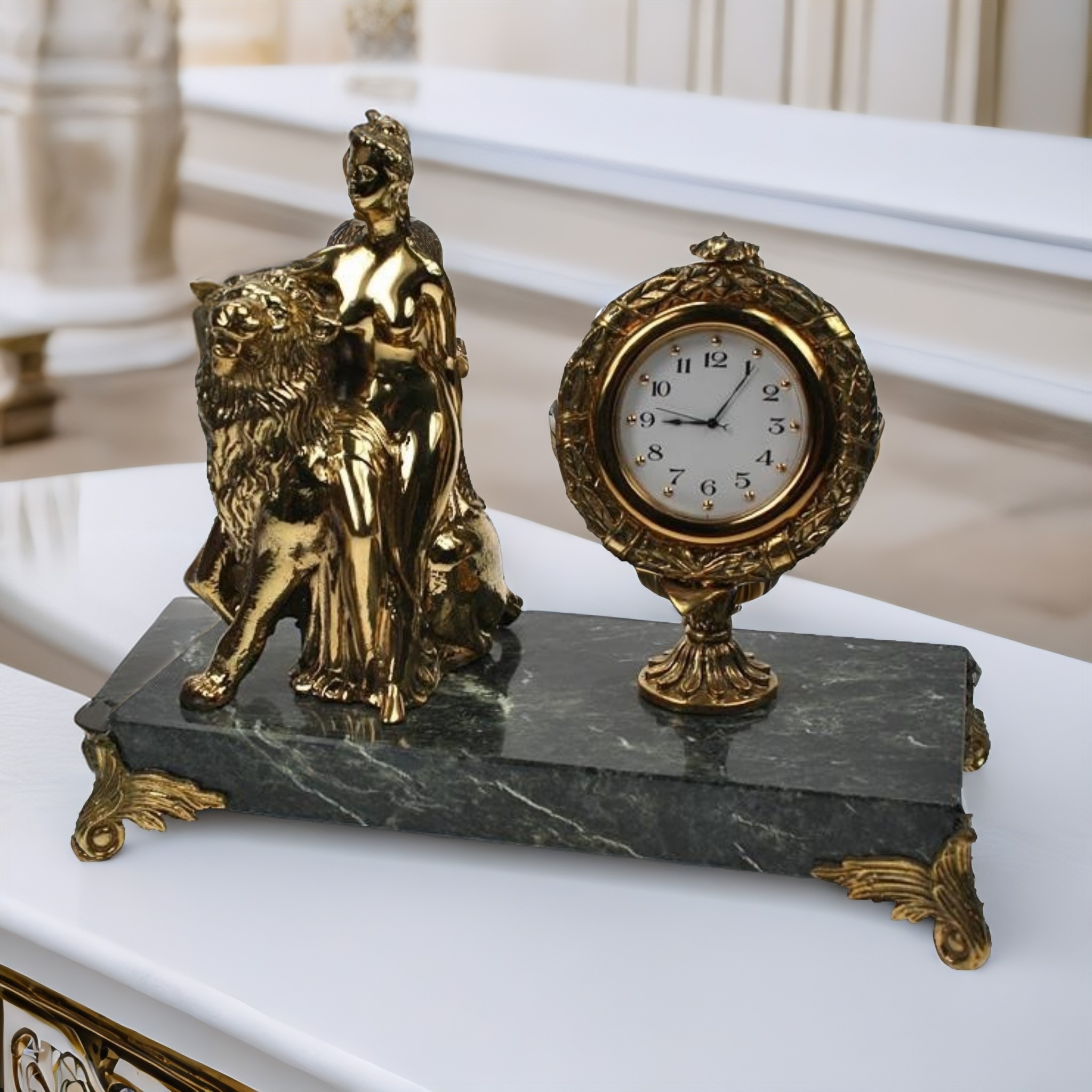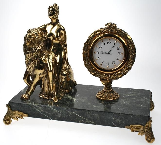 В поиске идеального подарка всегда есть трудности. Но есть что-то, что может быть идеальным решением для вас — настольные часы. Они не просто практичны и стильны, но также и символизируют вечность и бесценность времени, которое мы проводим вместе. Мы рады представить вам наши Часы настольные Диана со львом. Это настоящий произведение искусства, изготовленное из бронзы и змеевика. Статуэтка богини охоты Дианы, восседающей на льве, придает часам уникальный и необычный облик.