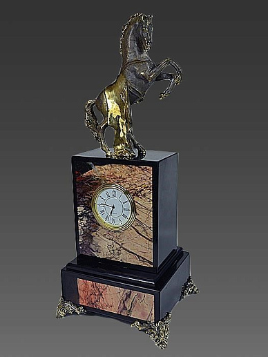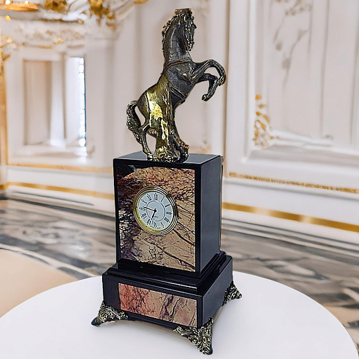 Статуэтка коня из бронзы делает эти часы не просто декоративным элементом, но и символом упорного труда и непреклонного стремления вперед.