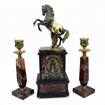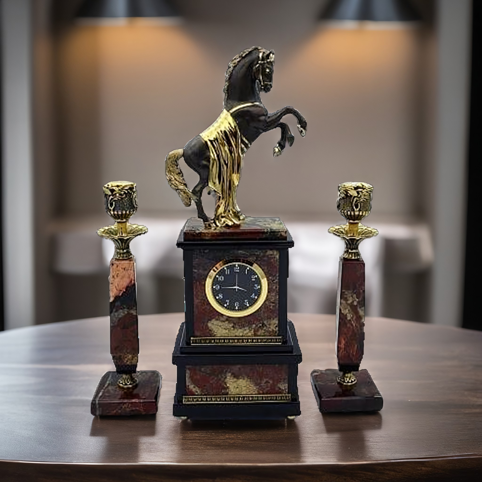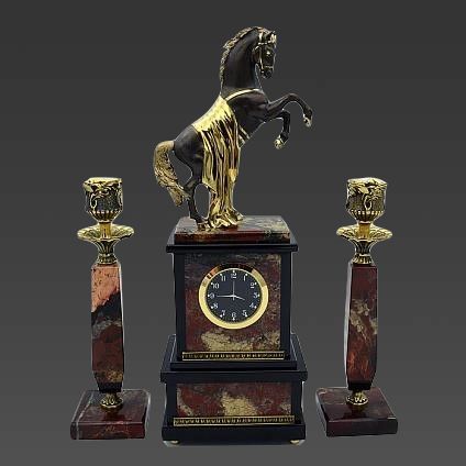 Хотите придать вашему дому нотку традиционного изящества и рафинированности? Часы каминные классические из яшмы и долерита — это идеальный способ сделать это. Эти часы не просто сообщают время — они декорируют пространство, наполняют его изысканной красотой и элегантностью. Часы каминные классические — это совершенное сочетание стиля и функциональности. Благородная бронзовая фигура коня, ставшая центральным элементом дизайна, символизирует силу, динамизм и благородство.