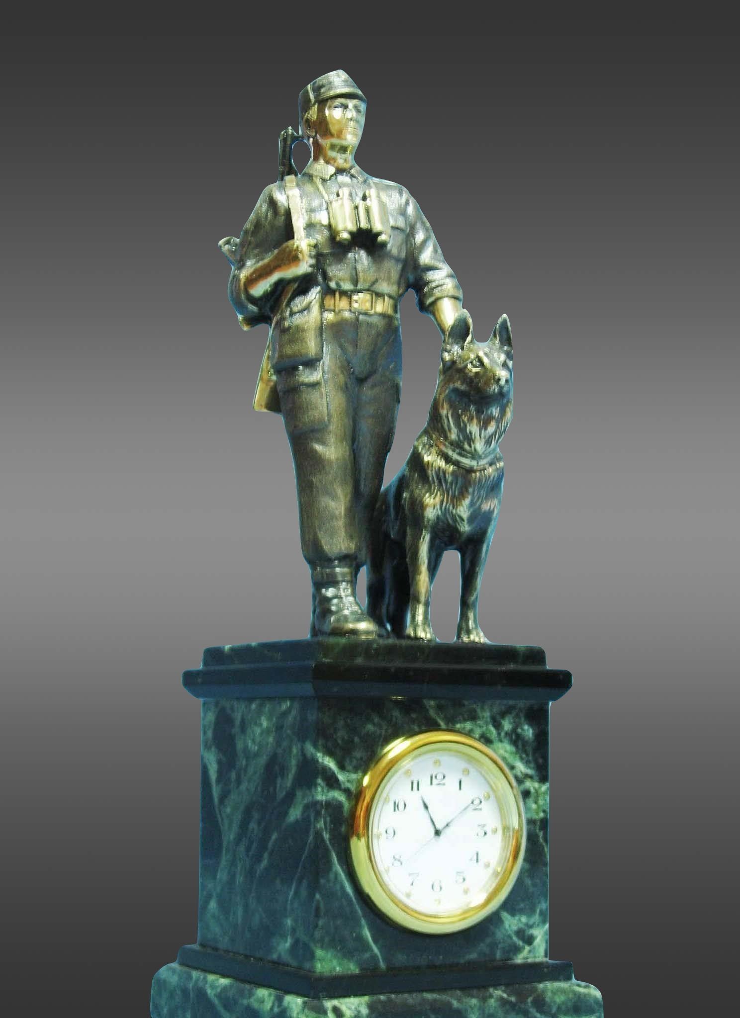 Не упустите шанс стать обладателем этих потрясающих часов! Бронзовая статуэтка пограничника с собакой и часы из змеевика ждут нового дома. Они готовы добавить в вашу жизнь немного винтажного шика и элегантности! |