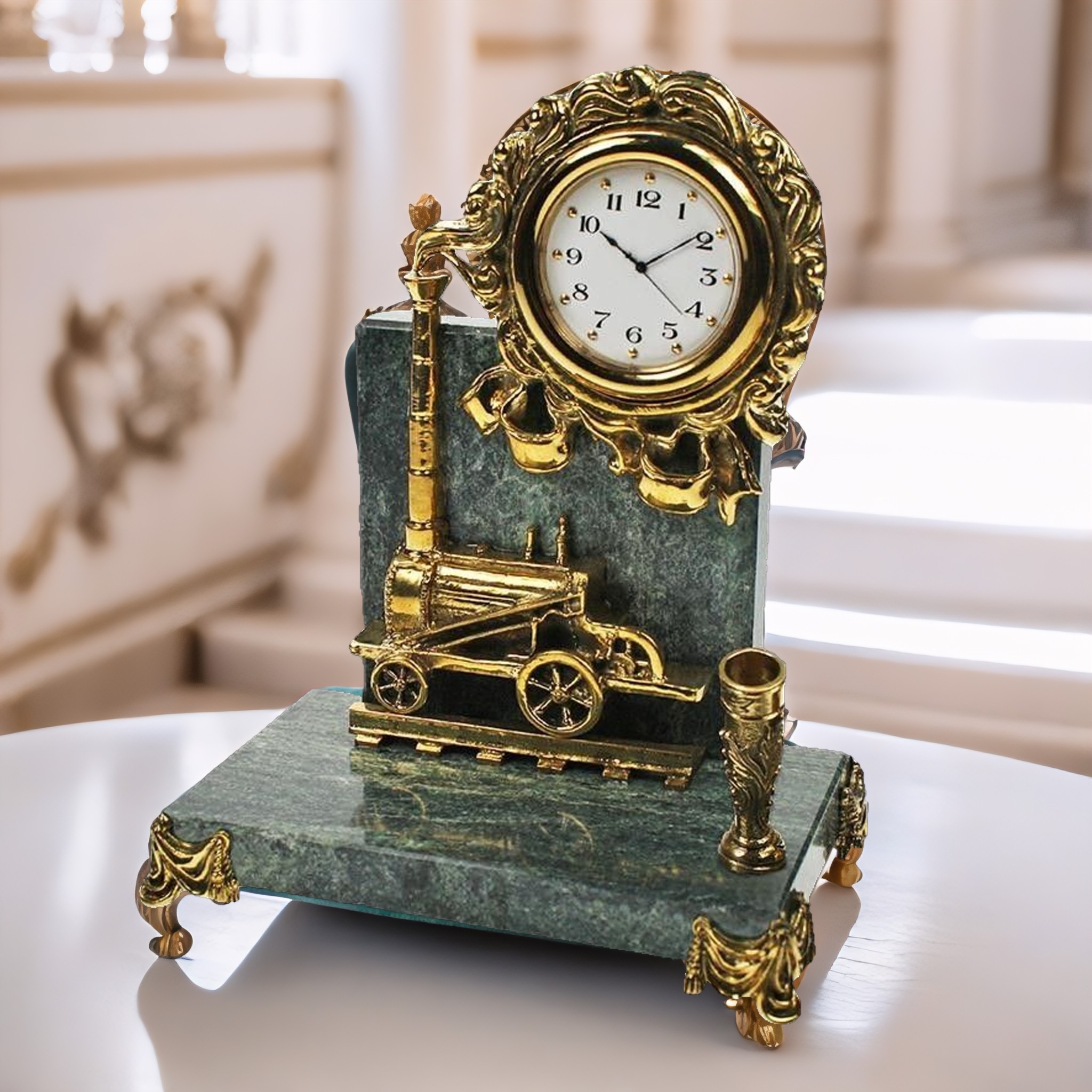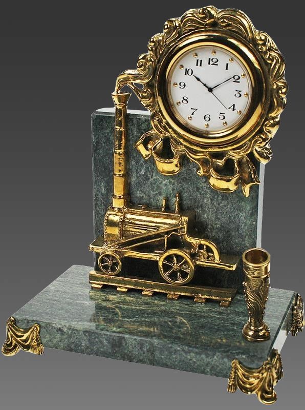 Мы рады представить вам уникальный предмет коллекции и стильного интерьера — часы подарочные «Паровоз с п/п». Изделие выполнено из высококачественных материалов: его основание изготовлено из натурального камня, что придает ему особой стабильности и солидности, а уникальный паровоз из бронзы добавляет ему необычности и исторического шарма. Исполняющие функцию часов, они не только станут великолепным украшением вашего интерьера, но и подчеркнут ваш отличный вкус и любовь к эксклюзивным вещам.