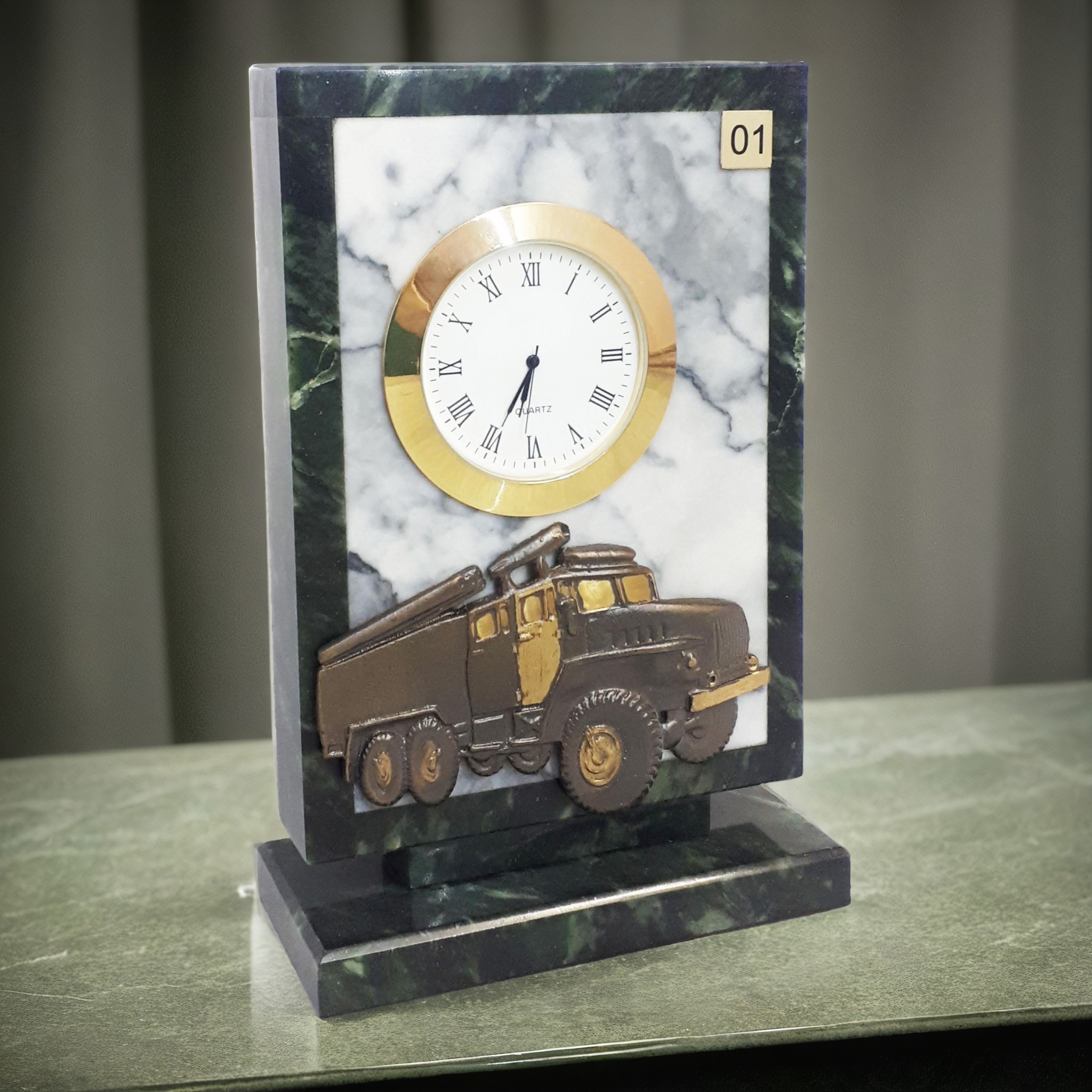 Представляем вашему вниманию нашу новую коллекцию сувенирных изделий — настольные часы, выполненные из змеевика и мрамора, а также миниатюрная копия грузовика Урал, отлитая из бронзы. Это отличный выбор для подарка близкому человеку или просто как великолепное дополнение к интерьеру вашего дома или офиса. Каждая модель уникальна и изготовлена вручную.