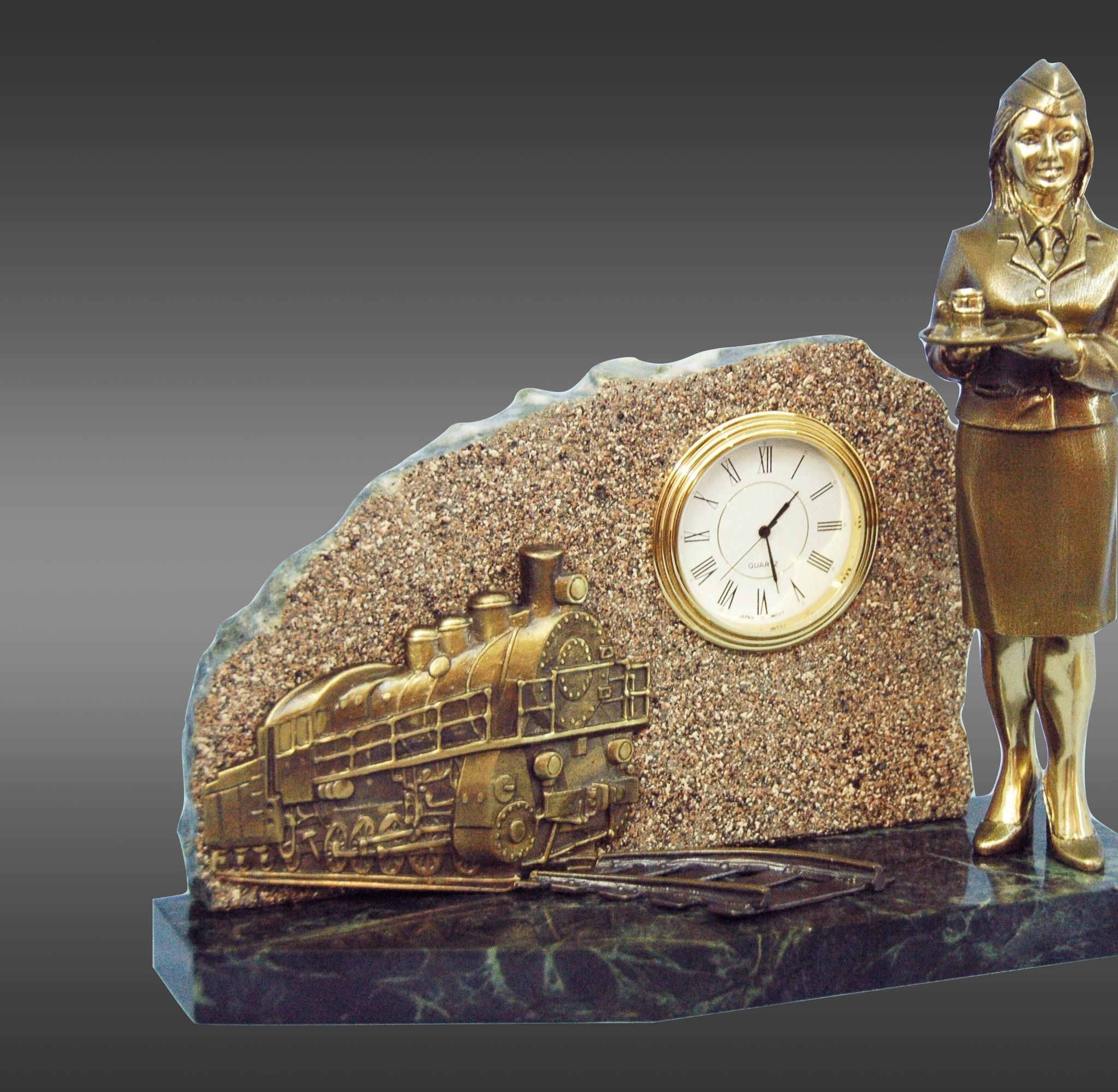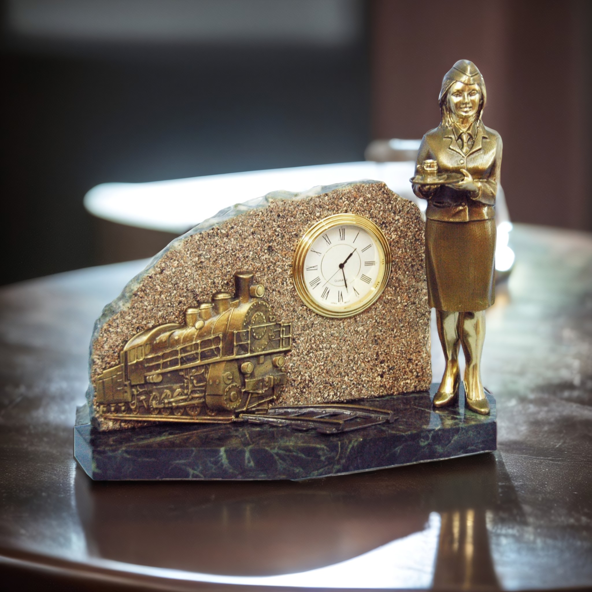Вы ищете уникальный подарок, который будет не только приятен на вид, но и полезен? Наш сувенир – настольные часы в виде паровоза – идеально вписывается в эту роль! Обаятельная проводница из бронзы, которая это часть нашего творения, обязательно привлечет внимание любого, кто увидит ее.