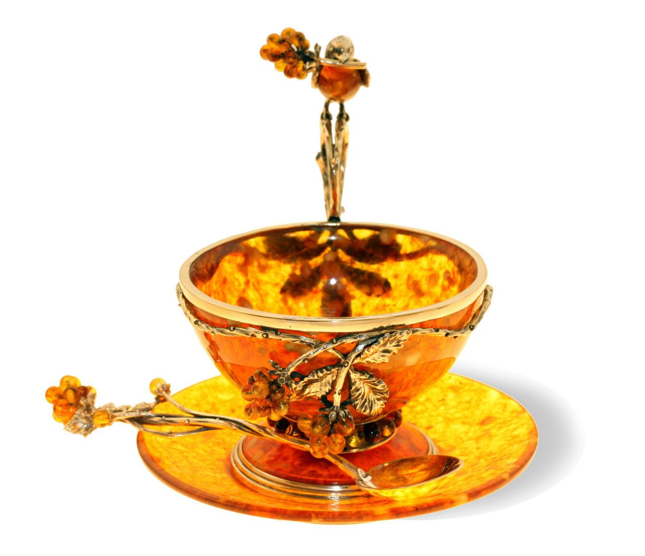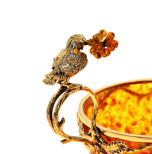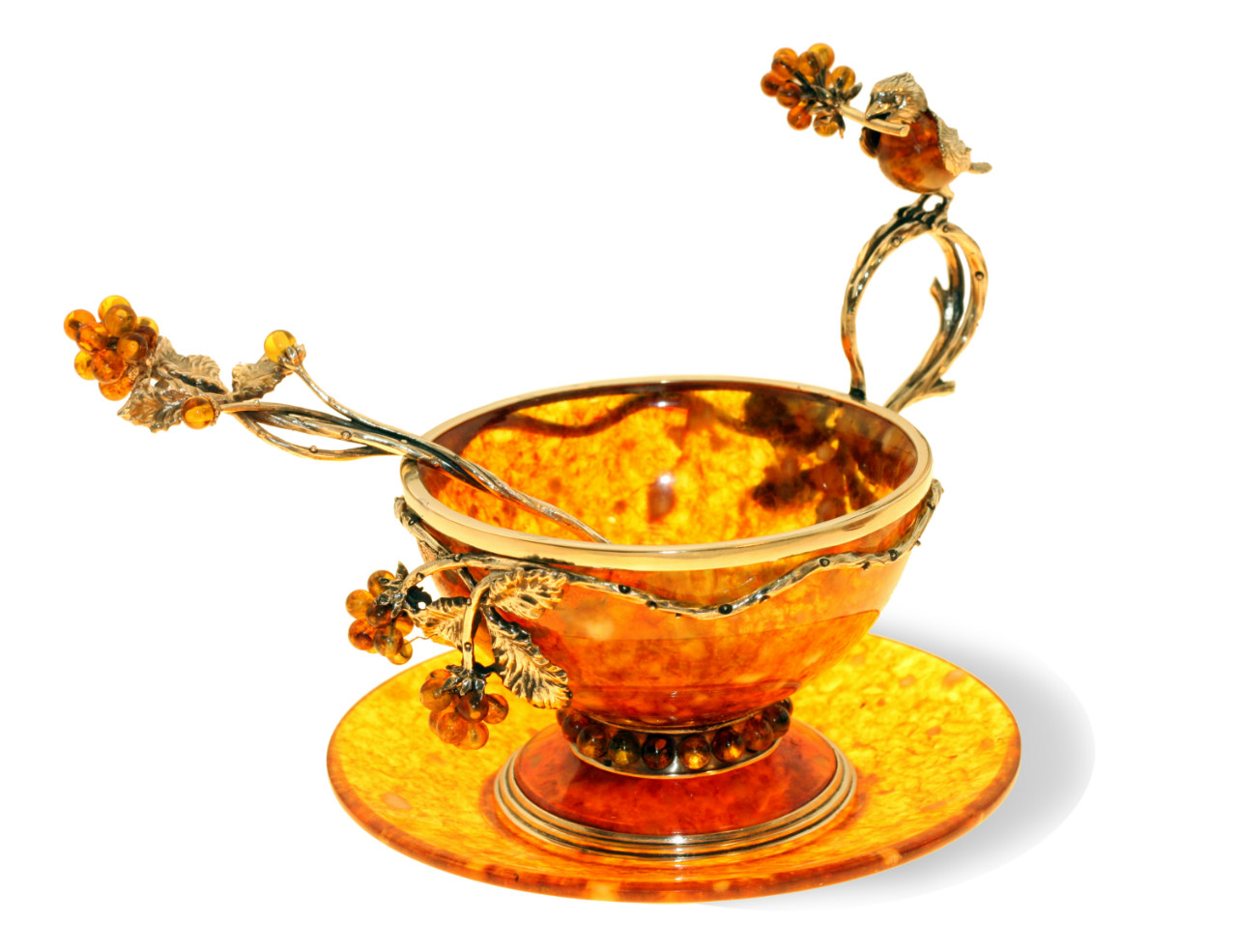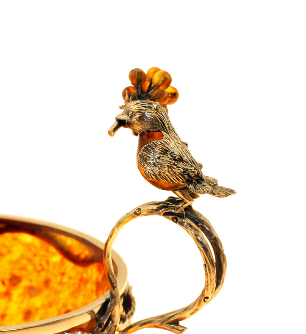 Наша новинка – чайная чашка из янтаря с ложечкой. Эта уникальная ручной работы чашка – это сочетание эстетики и функциональности. Она украшена бронзовыми элементами в виде птичек и ягод, что придает ей особый шарм и уникальность. Восхитительные детали исполнены качественно и с любовью к делу, делают эту чашку настоящим произведением искусства. Каждая птичка и ягода внимательно проработана и выглядит ярким и очень реалистичным.