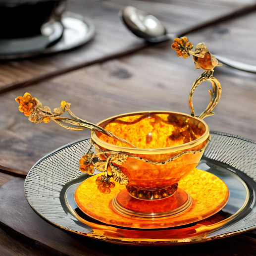 “Эксклюзивная чайная чашка из янтаря с ложечкой не просто служит своему назначению, она добавляет в вашу жизнь красоты и изысканности, превращая простое чаепитие в настоящий ритуал”.