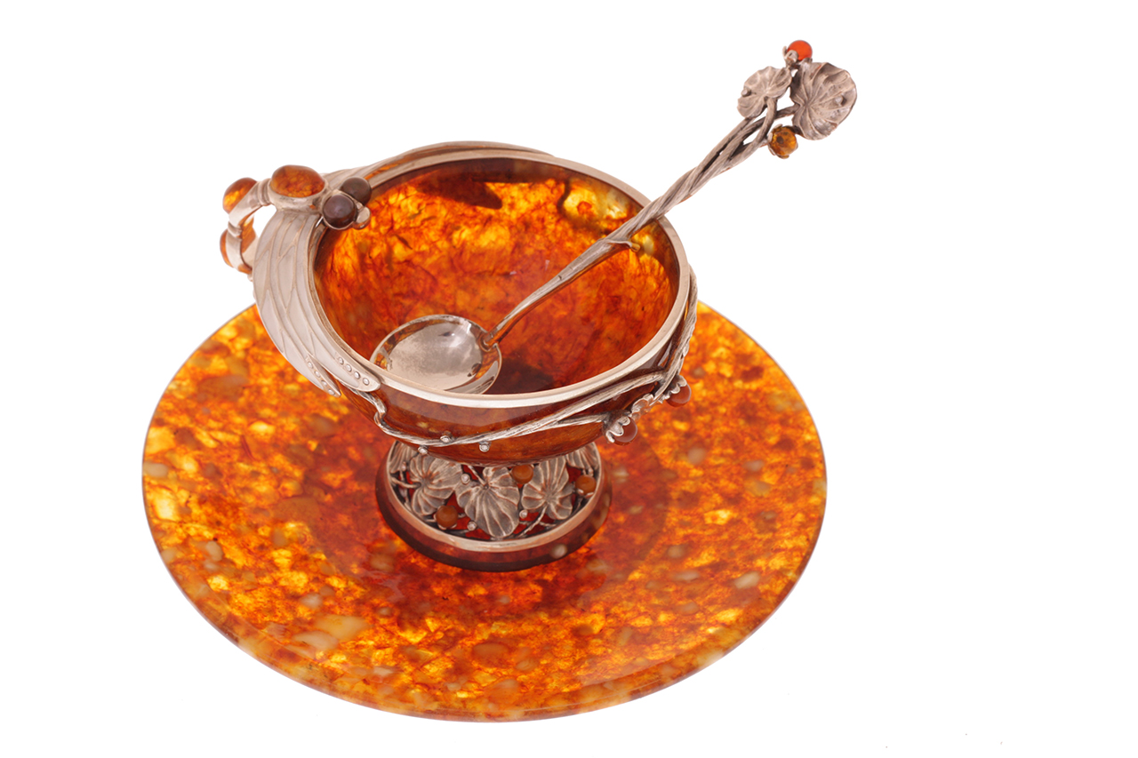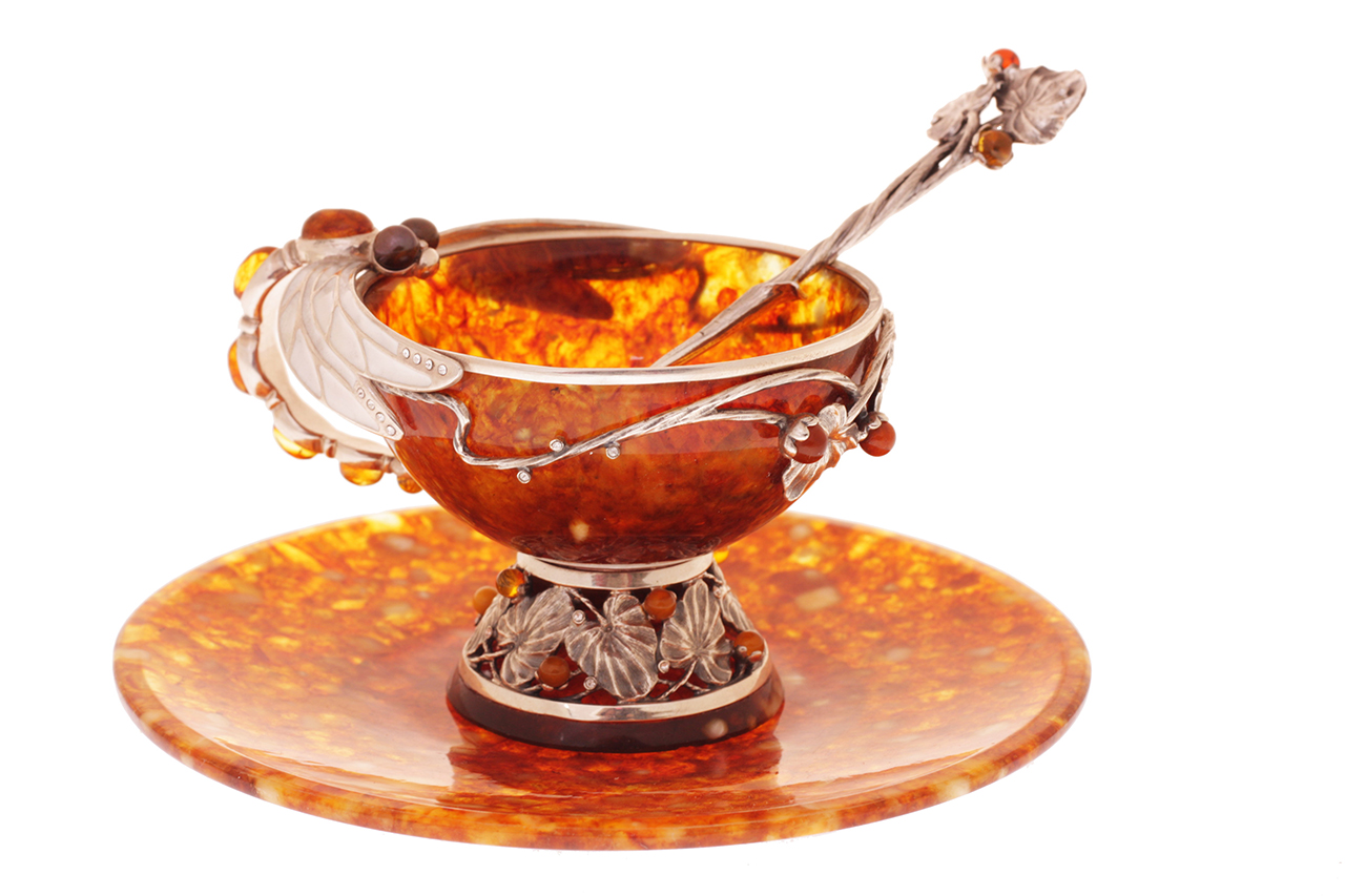 Чашка чайная ажурная из янтаря с ложкой