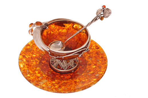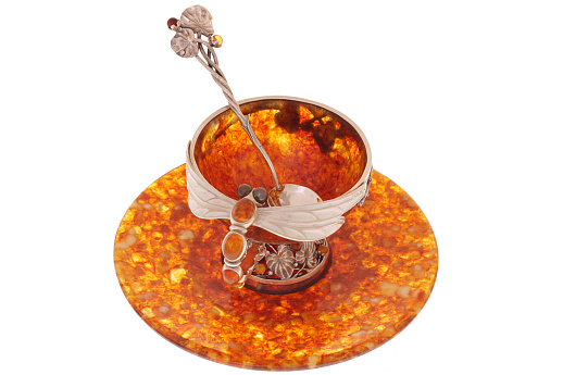 Чайная чашка из янтаря с ложечкой