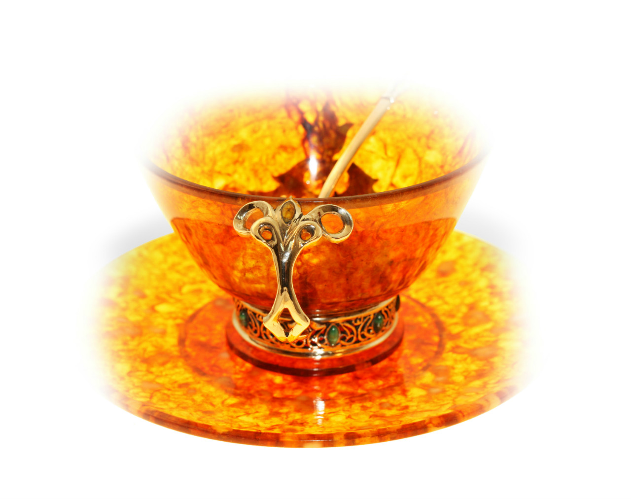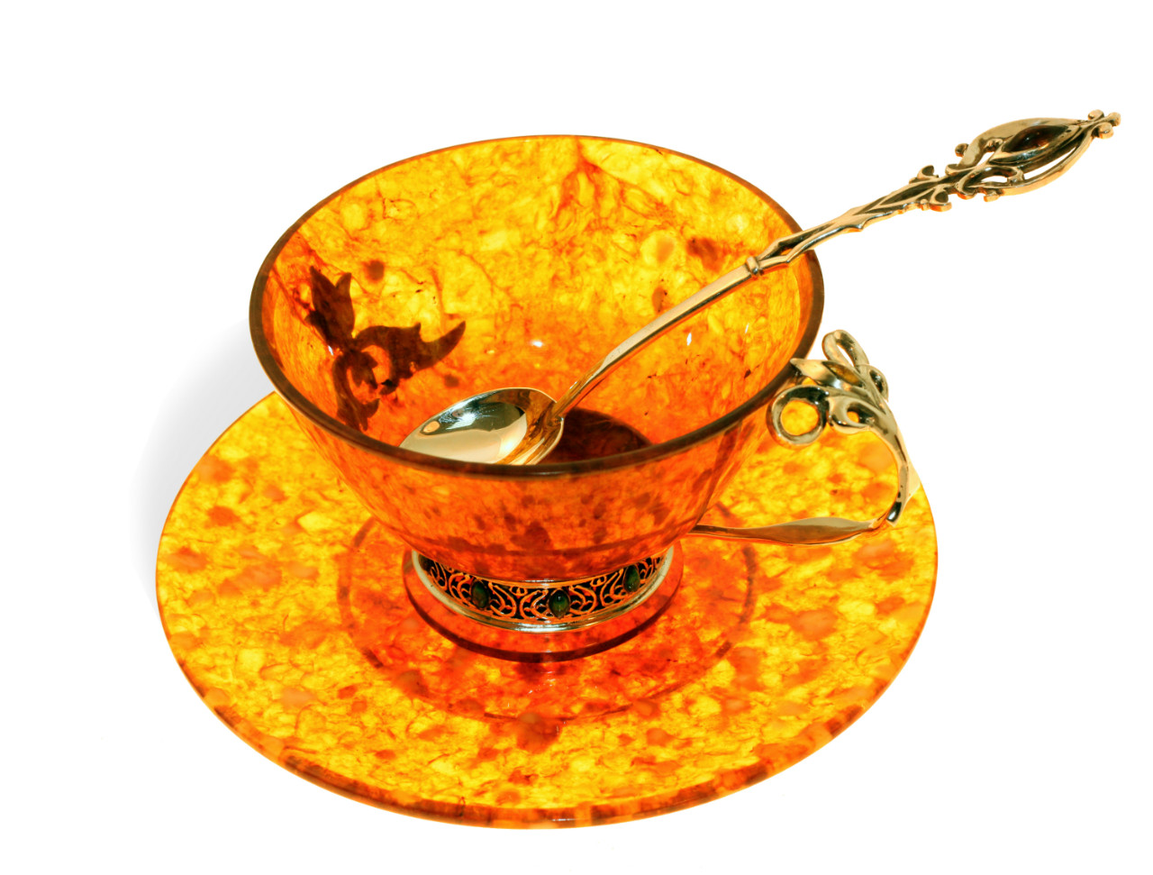 Чашка чайная ажурная из янтаря с ложкой