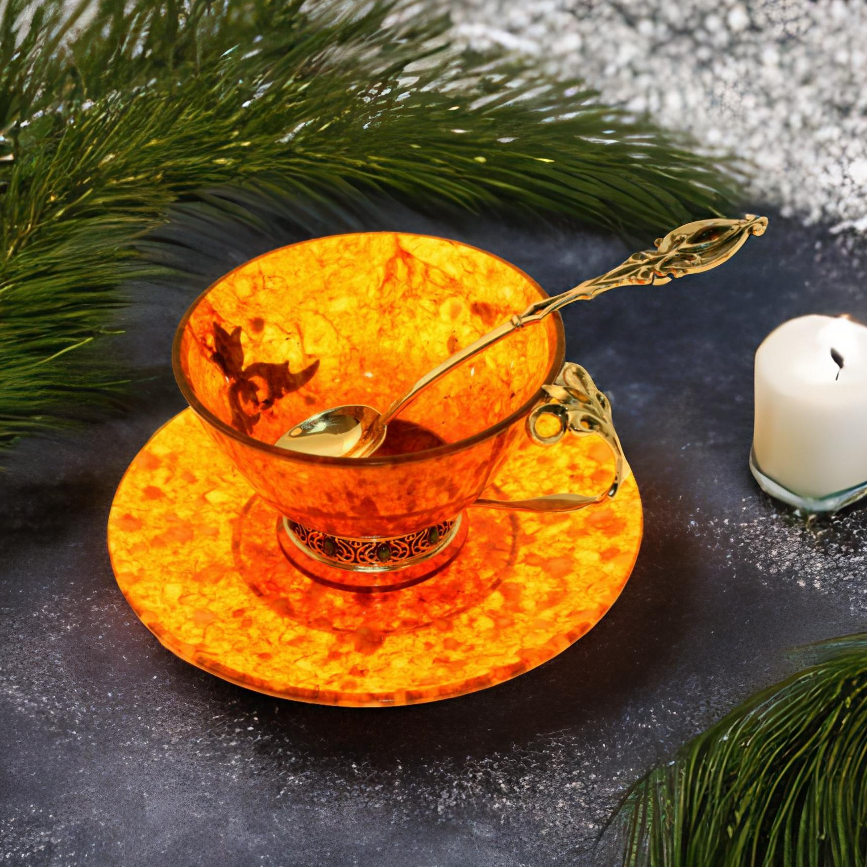 Чашка чайная из янтаря с ложечкой