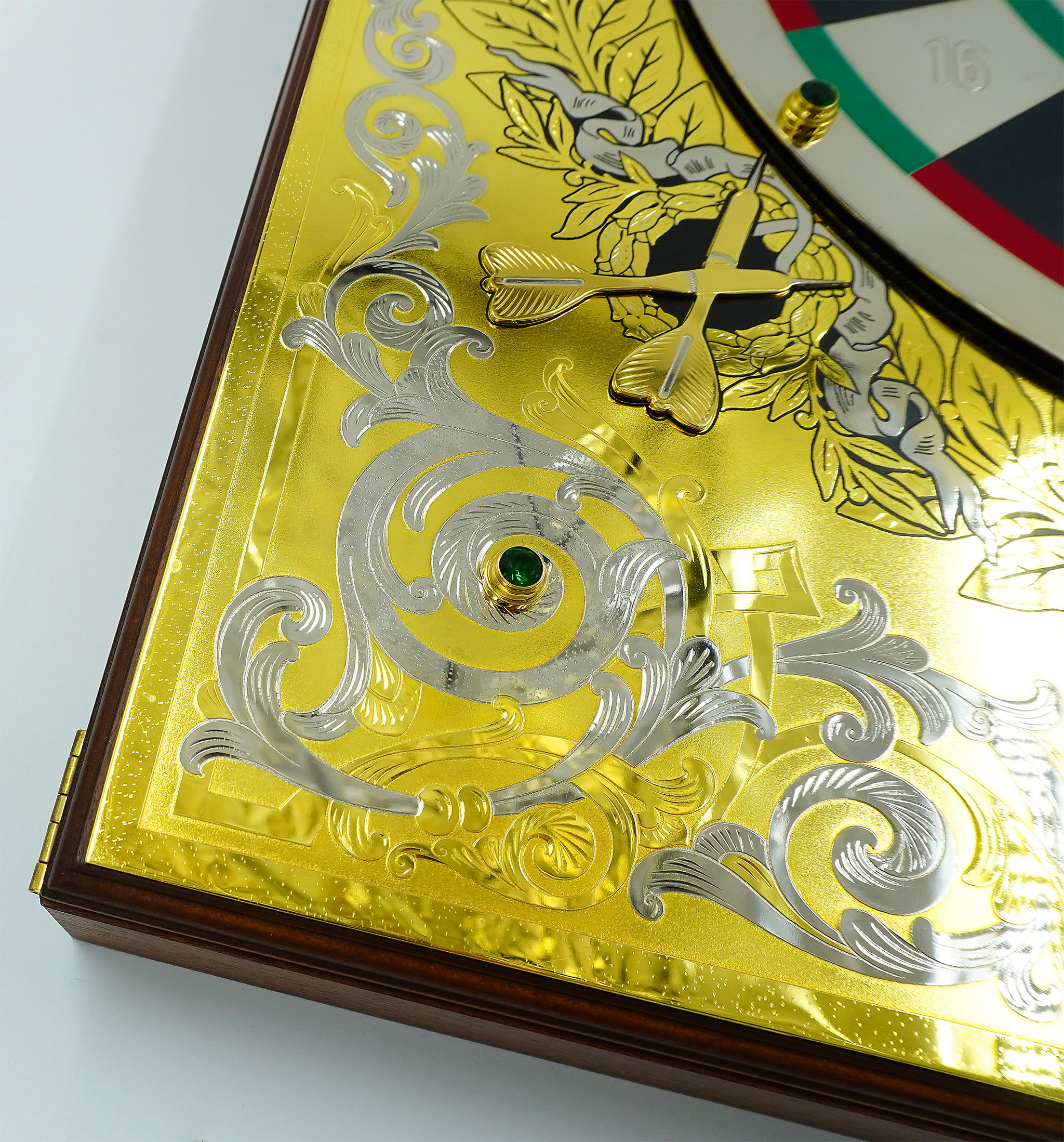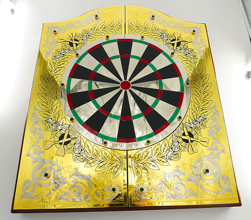 Профессиональный набор для игры в дартс из Златоуста. Мишень изготовлена из качественного сизаля, что обеспечивает долговечность и устойчивость к износу. Доска для дартс впечатляет своим эксклюзивным дизайном - она украшена изысканной гравировкой и сверкающими фианитами. Этот набор - идеальный подарок для любителей спортивных игр, он добавит изюминку в обычные вечера с друзьями или семьей. Также он станет замечательным элементом декора в вашем доме или офисе, подчеркивая вкус и статус владельца. |