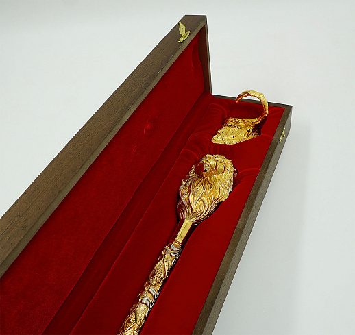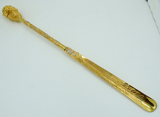 Декоративная обувная ложка "Лев". Позолоченная
