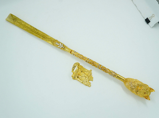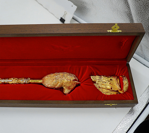 Декоративная обувная ложка "Волк". Позолоченная