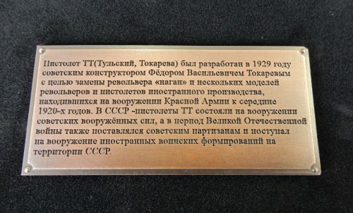 Пистолет ТТ (Тульский, Токарева) был разработан в 1929 году советским конструктором Федоров Васильевичем Товаревым с целью замены револьвера «наган» и нескольких моделей револьверов и пистолетов иностранного производства, находившихся на вооружении Красной Армии к середине 1920-х годов. В СССР пистолеты ТТ состояли на вооружении советских вооруженных сил, а в период Великой Отечественной войны также поставлялся советскими партизанами и поступал на вооружение иностранных воинских формирований на территории СССР.