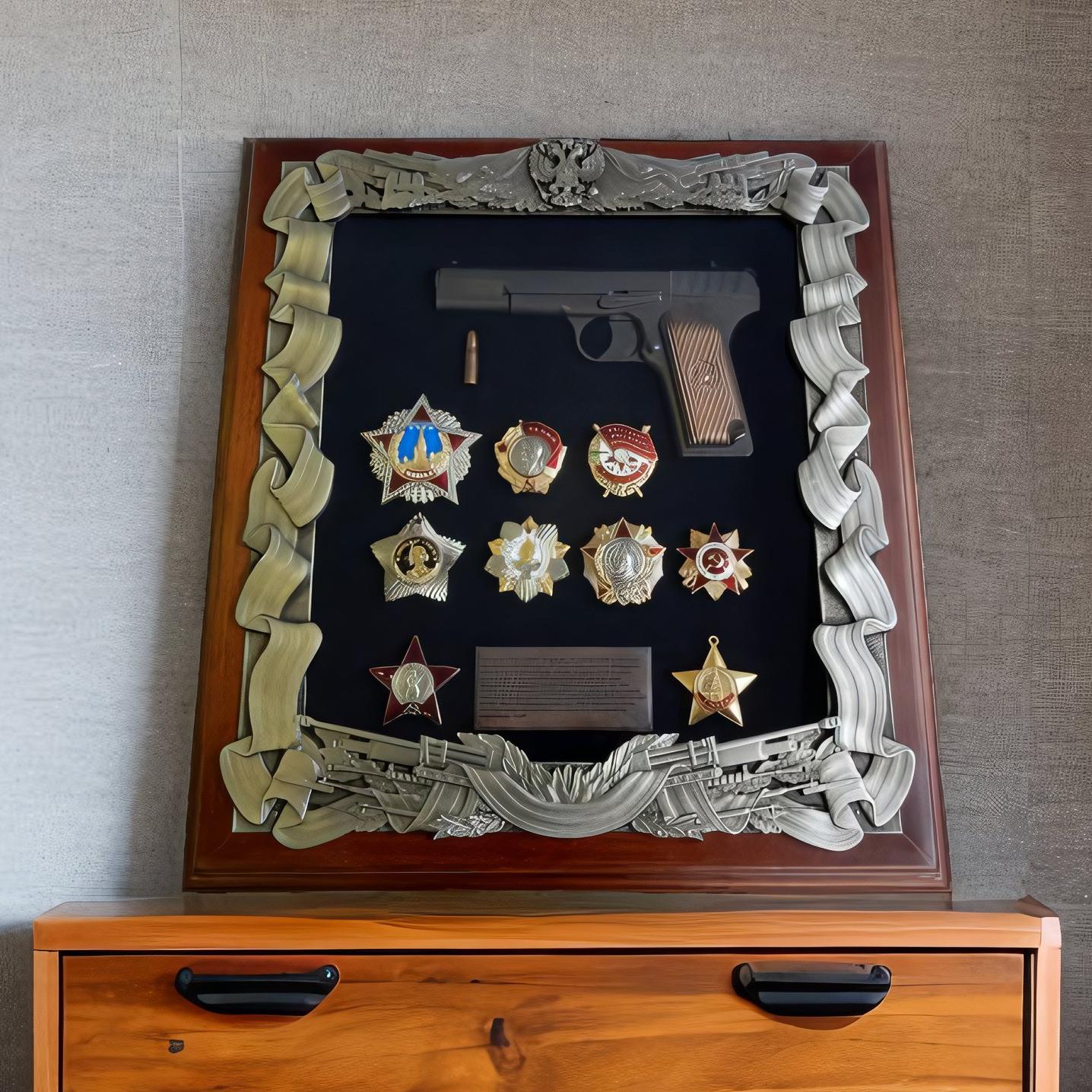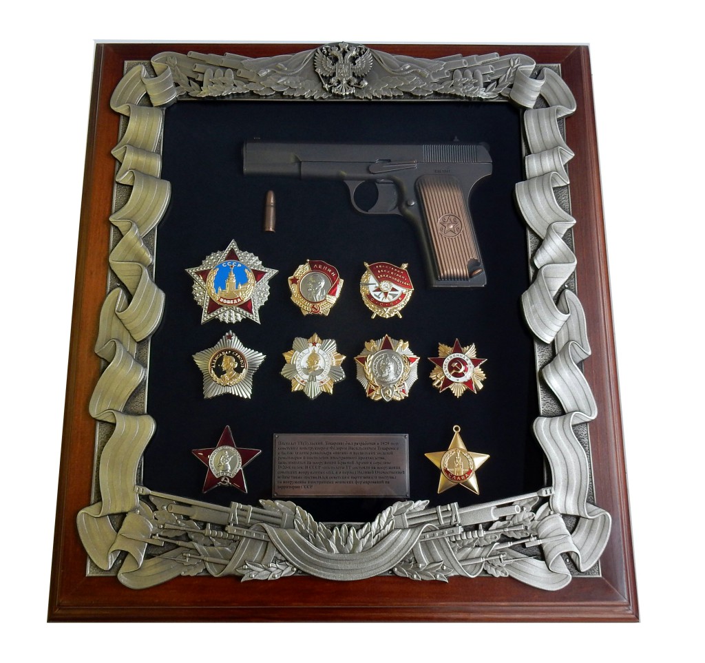 Деревянная ключница с пистолетом ТТ и наградами ВОВ