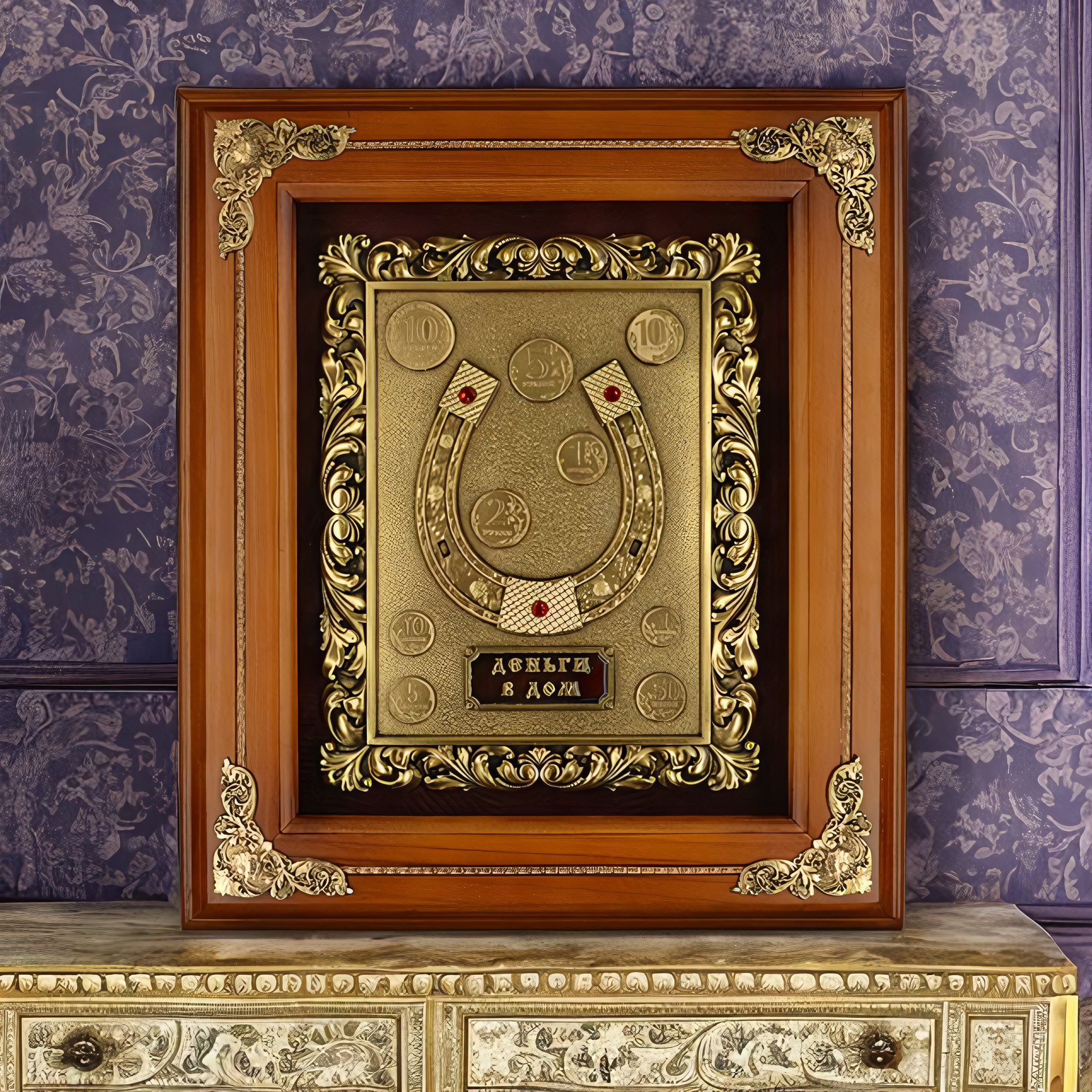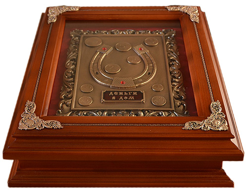 Деревянная ключница настенная "Рог изобилия" монеты с золочением