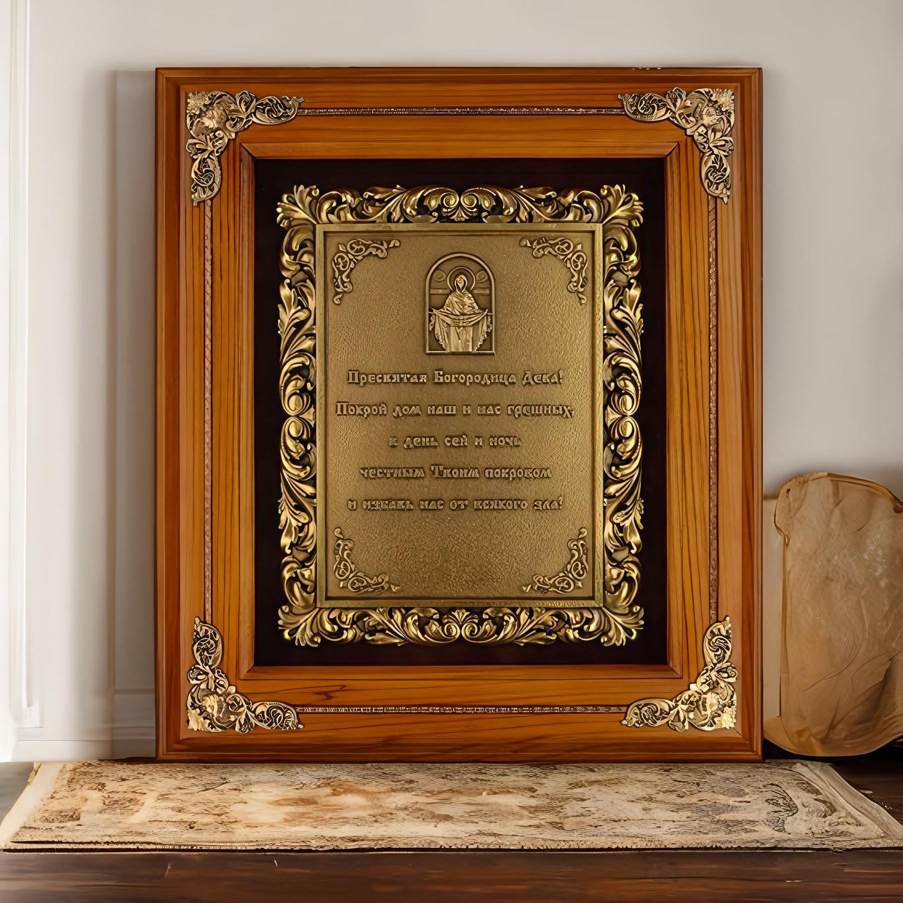 Представляем вашему вниманию уникальный элемент интерьера – деревянная ключница Покров Богородицы. Этот изысканный и универсальный аксессуар станет идеальным дополнением к любому интерьеру и будет радовать вас своей практичностью и очарованием. Отличительной чертой продукта является использование гальванопластики – технологии, которая позволяет создать безупречное послойное покрытие, украшающее ключницу. Ручная работа и эксклюзивный дизайн делают каждую модель уникальной.