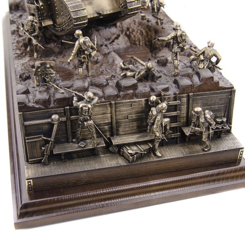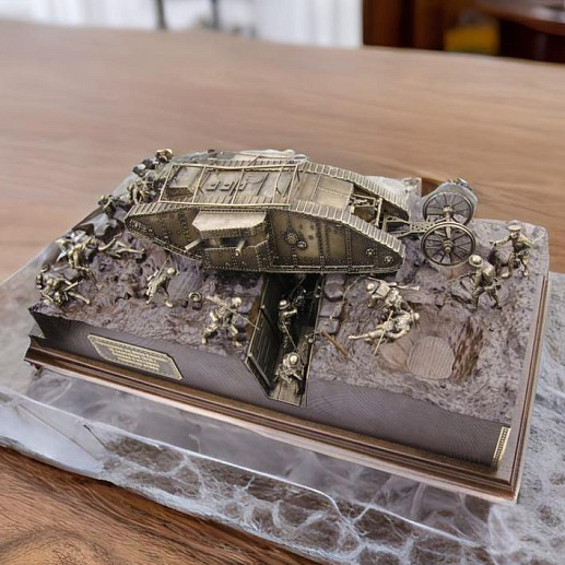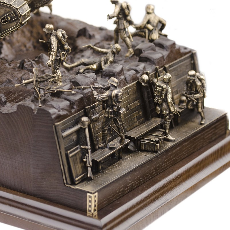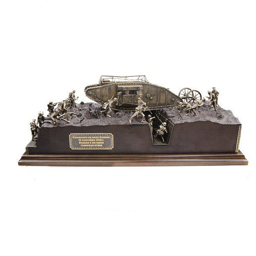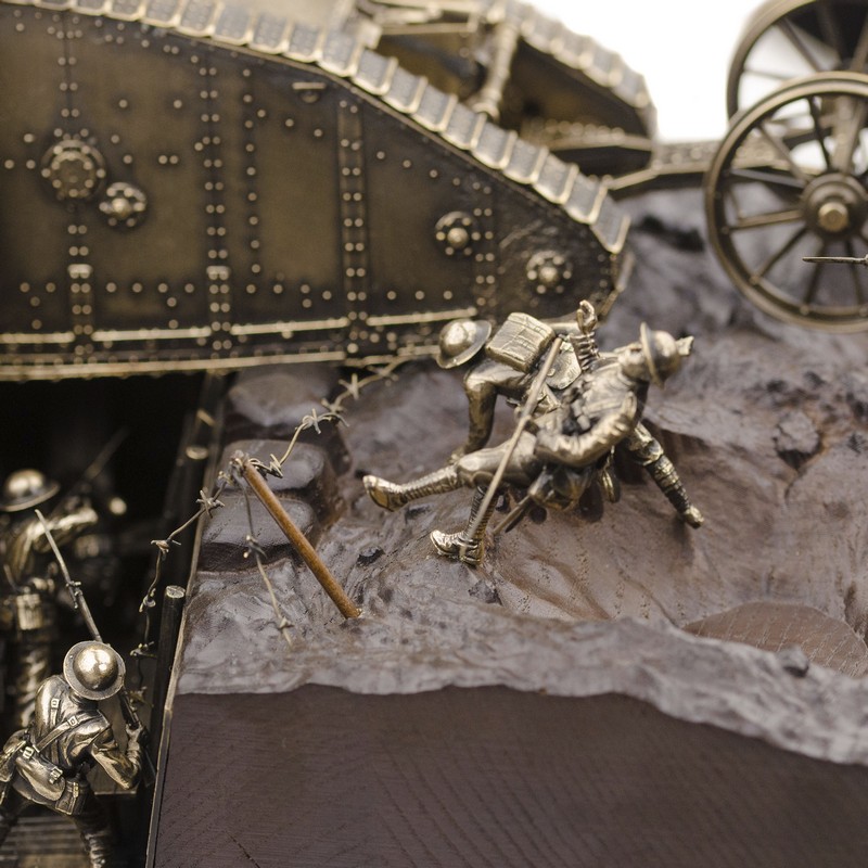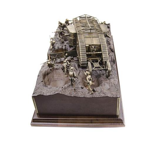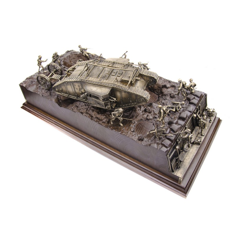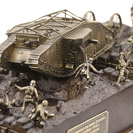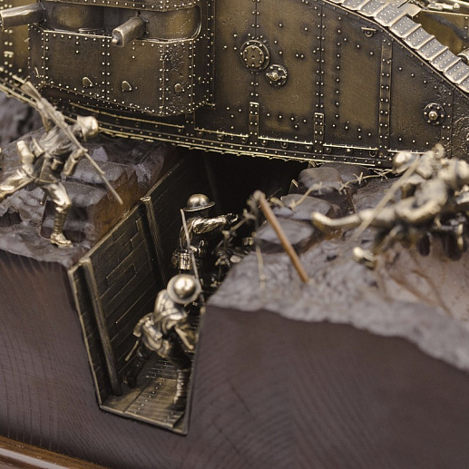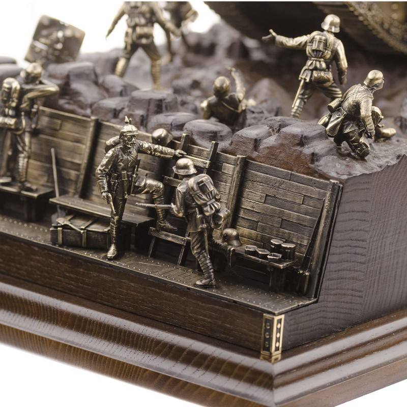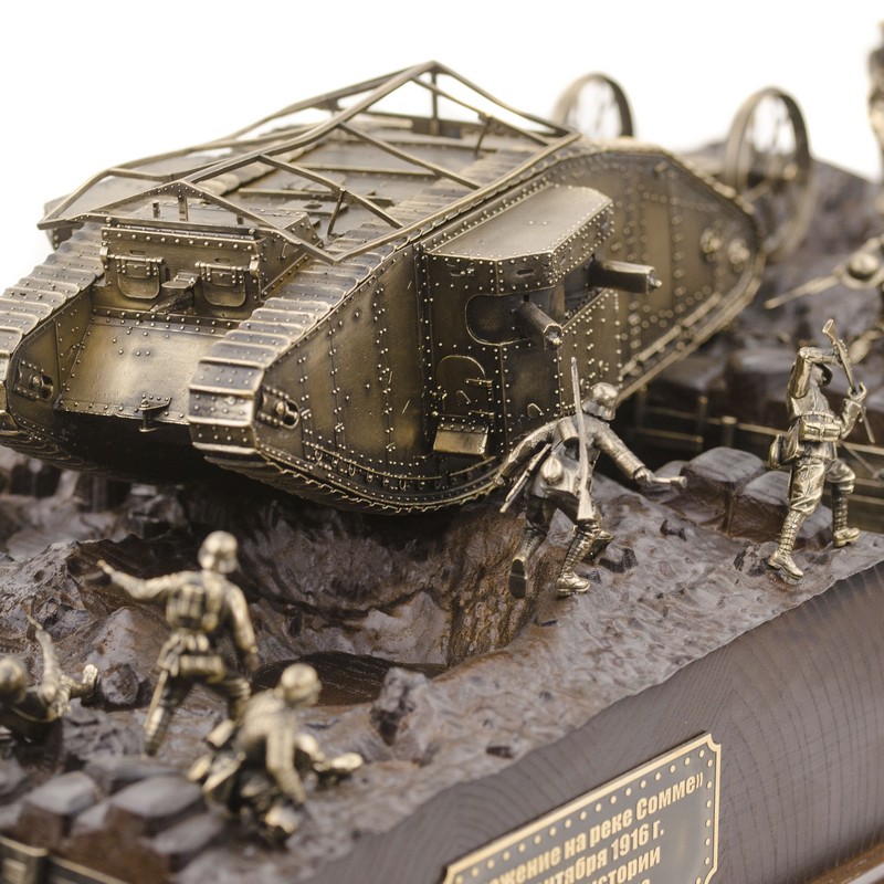 Диорама "Битва на реке Сомме" представляет собой захватывающую и детализированную композицию, воспроизводящую одну из ключевых моментов Первой мировой войны. Сцена изображает танк, переезжающий через ров, и солдат, находящихся в перестрелке, что передает напряженность и хаос этого конфликта. Этот уникальный предмет искусства будет идеальным подарком для историков, военных энтузиастов или любителей масштабных моделей. Такой подарок привнесет в интерьер глубокий исторический контекст и станет отличным обсуждаемым предметом в вашем доме или офисе. Подарите своим близким возможность погрузиться в историю одного из самых кровопролитных сражений XX века. |