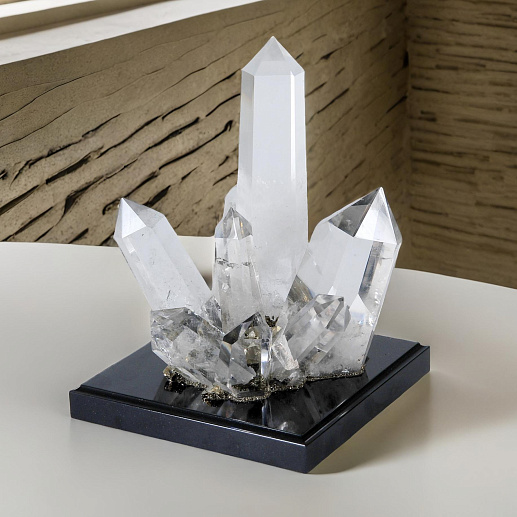 Ценители природной красоты, мы приглашаем вас открыть для себя неповторимый мир минералов с нашим новым предложением — Друза горного хрусталя на основании из долерита. Эта эксклюзивная модель горного хрусталя на долеритовой основе – идеальное дополнение для вашего интерьера и аксессуар, который не оставит ваших гостей равнодушными.